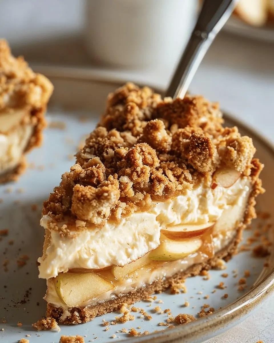Creating a stunning presentation can make your apple crumble cheesecake the star of any gathering. For special occasions, serve individual slices on elegant dessert plates, topped with a drizzle of caramel sauce for that wow factor. Add a sprig of mint for a pop of color and an aromatic touch. If you’re feeling extra festive, consider adding edible flowers or even serving it on a rustic wooden board embellished with fresh apple slices. This not only enhances the visual appeal but also sparks conversation among your guests!
