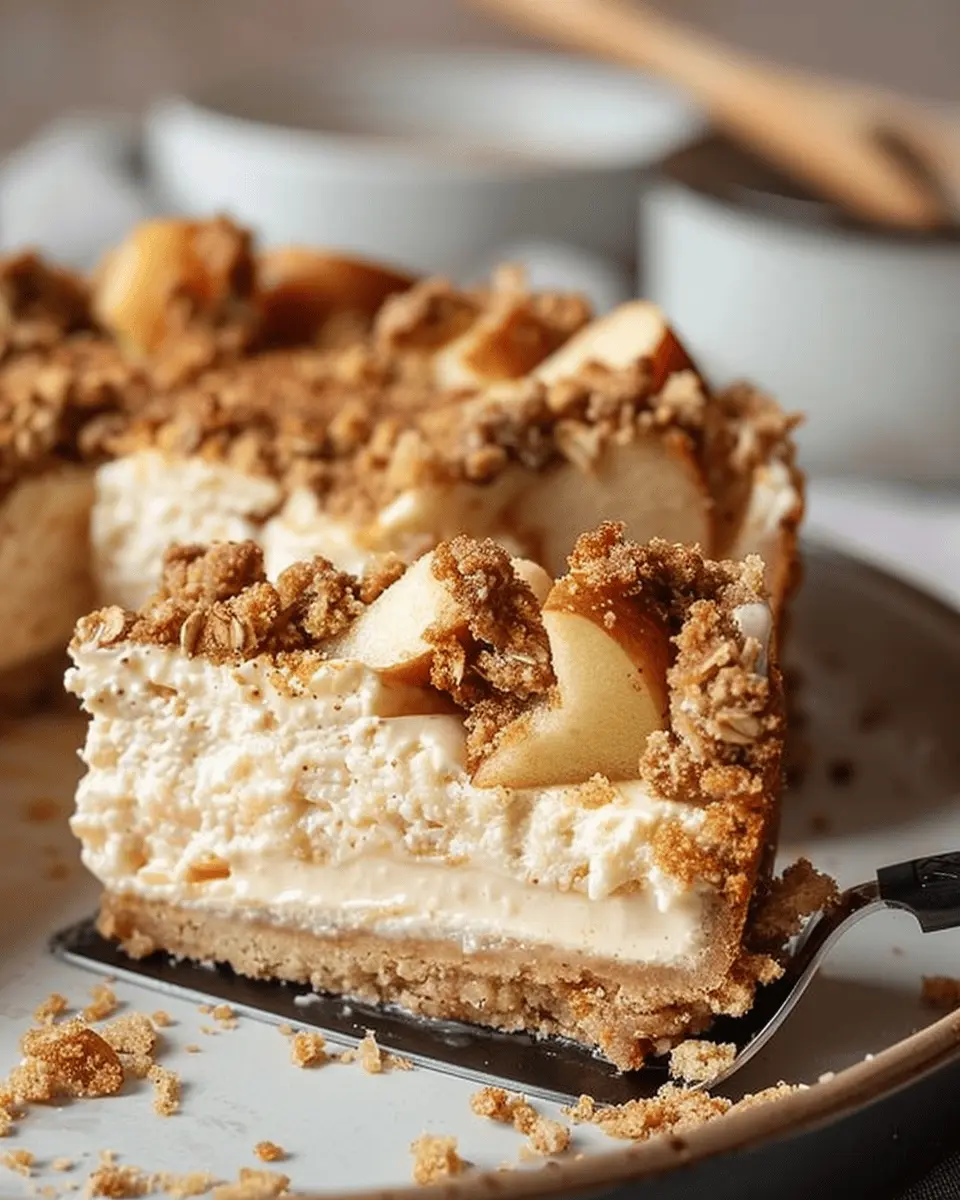 When indulging in a delicious apple crumble cheesecake, the right beverage can elevate the experience. Consider serving it alongside a warm cup of chai tea or a refreshing iced matcha latte. Both pair beautifully and offer a lovely contrast to the creaminess of the cheesecake. For a fun twist, try garnishing each slice with a dollop of cinnamon-infused whipped cream—it’s a game changer! A sprinkle of chopped pecans or walnuts adds a delightful crunch and complements the apple flavors perfectly.