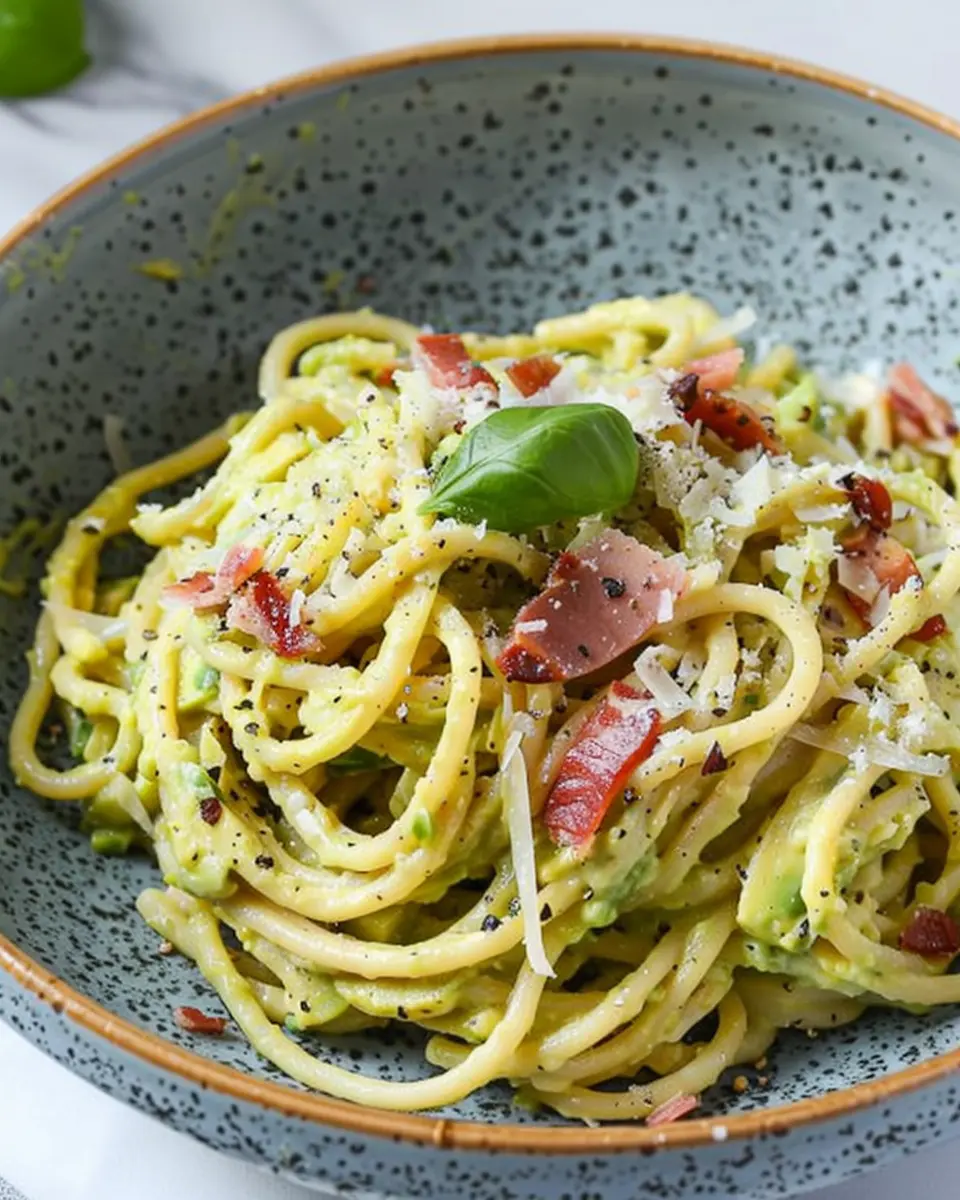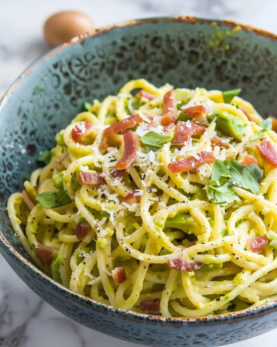 PrintAvocado Carbonara: A Creamy, Guilt-Free Twist with Turkey Bacon
