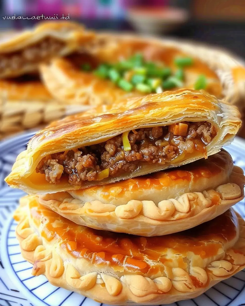 Chinese Meat Pies, known as Xian Bing, are a beloved delicacy originating from China, featuring a savory filling wrapped in a delightful, flaky crust. Traditionally, they are filled with various meats and vegetables, but you can customize them to suit your taste. Picture a perfectly golden-brown exterior that gives way to a warm, juicy filling that might include seasoned beef, fresh herbs, and perhaps a dash of soy sauce. This versatility makes Xian Bing a perfect addition to any meal or a delicious snack on the go.