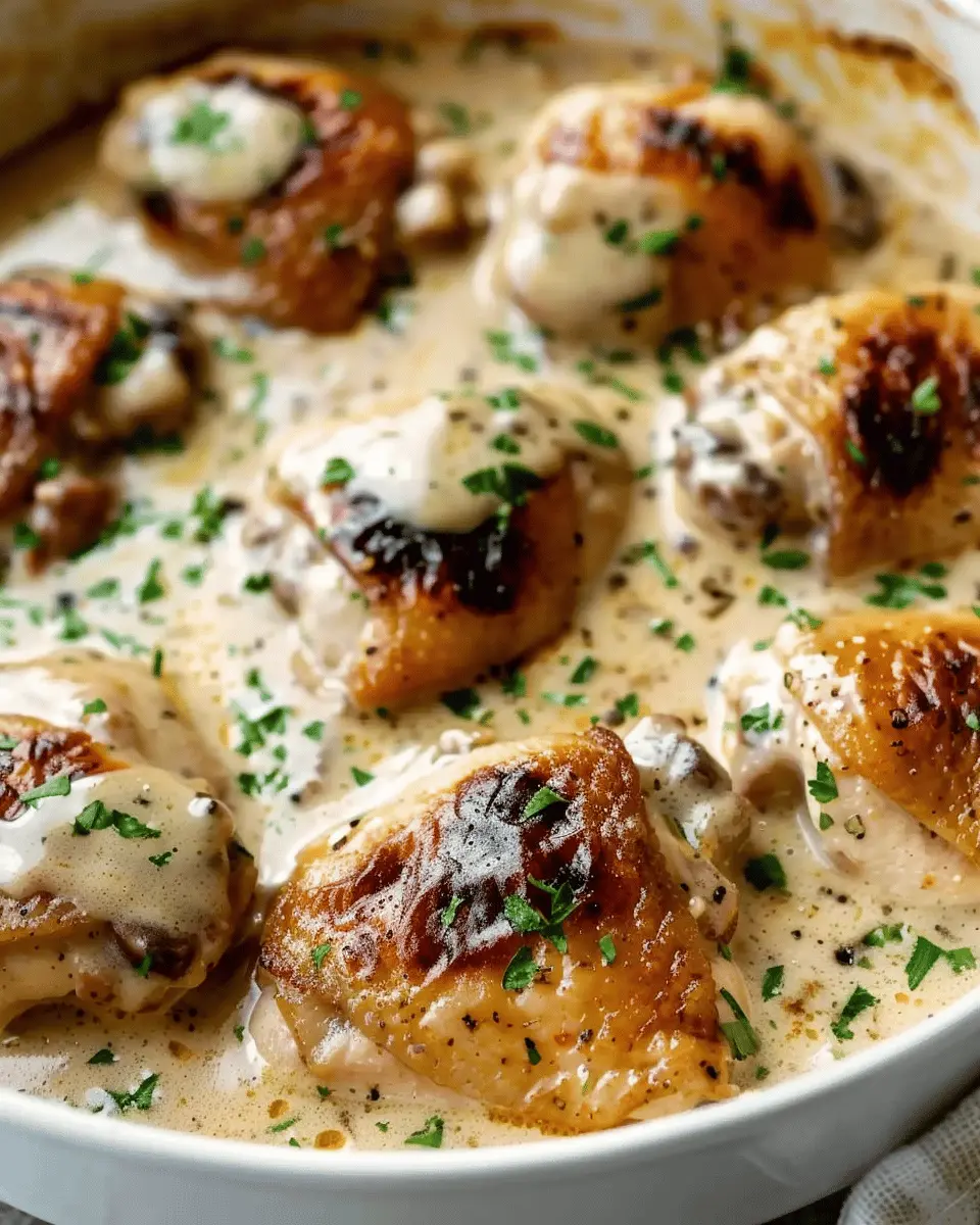 In summary, creamy oven baked chicken thighs make for a delightful meal, perfect for busy weeknights and special occasions alike. The combination of tender chicken and a luscious creamy sauce creates a dish that’s not only comforting but also impresses at the dinner table.