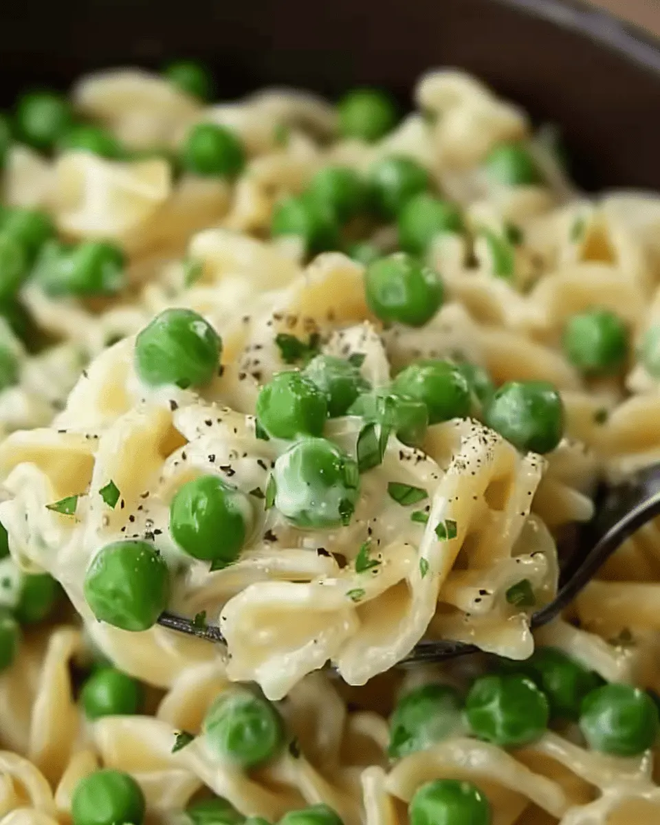 Step-by-Step Preparation of Creamy Peas and Noodles