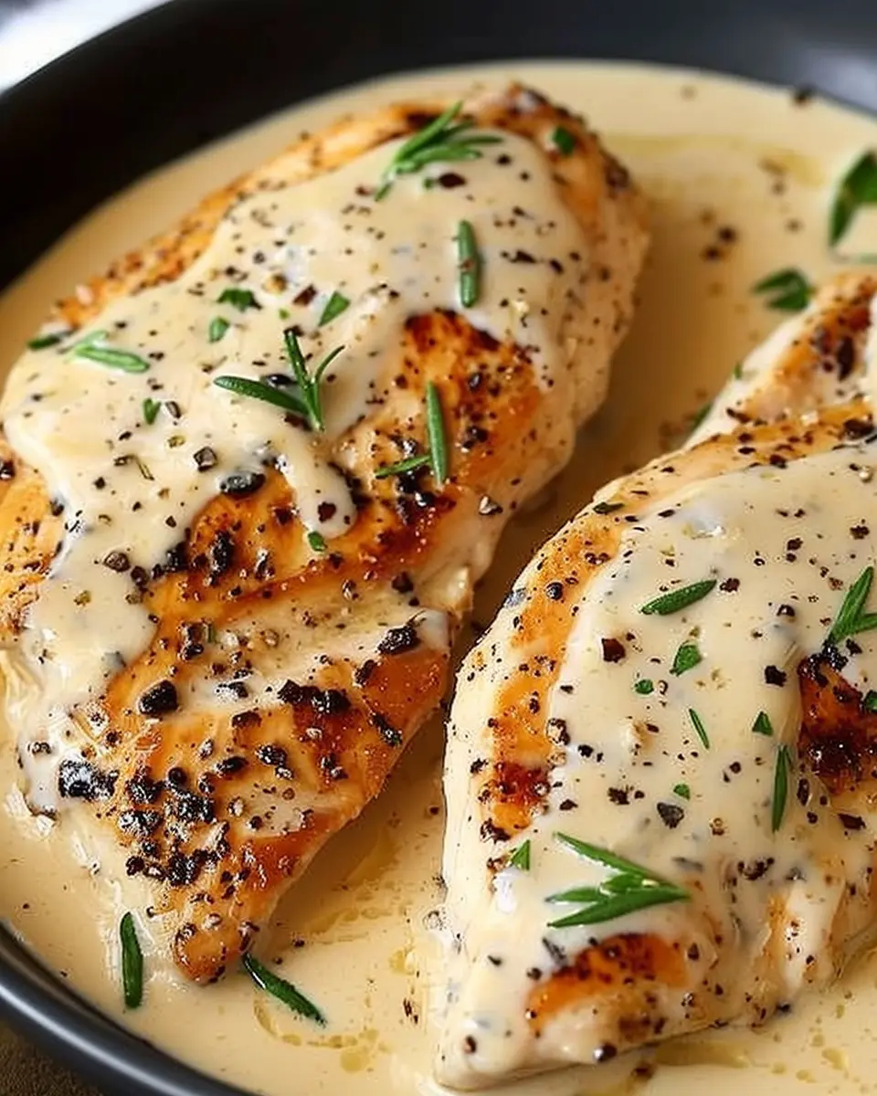 - Return the seared chicken breasts to the skillet with the ranch sauce.