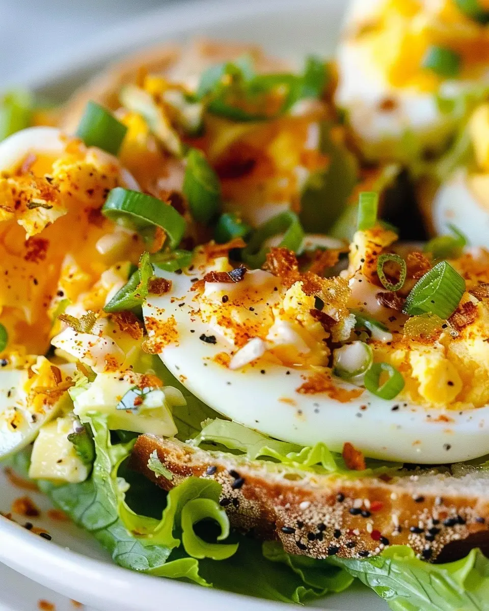 If you’re in the mood for a kick, this spicy crispy egg salad variation is for you! The addition of jalapeños not only brings heat but also a burst of flavor that wakes up your taste buds. Here’s how to make it: