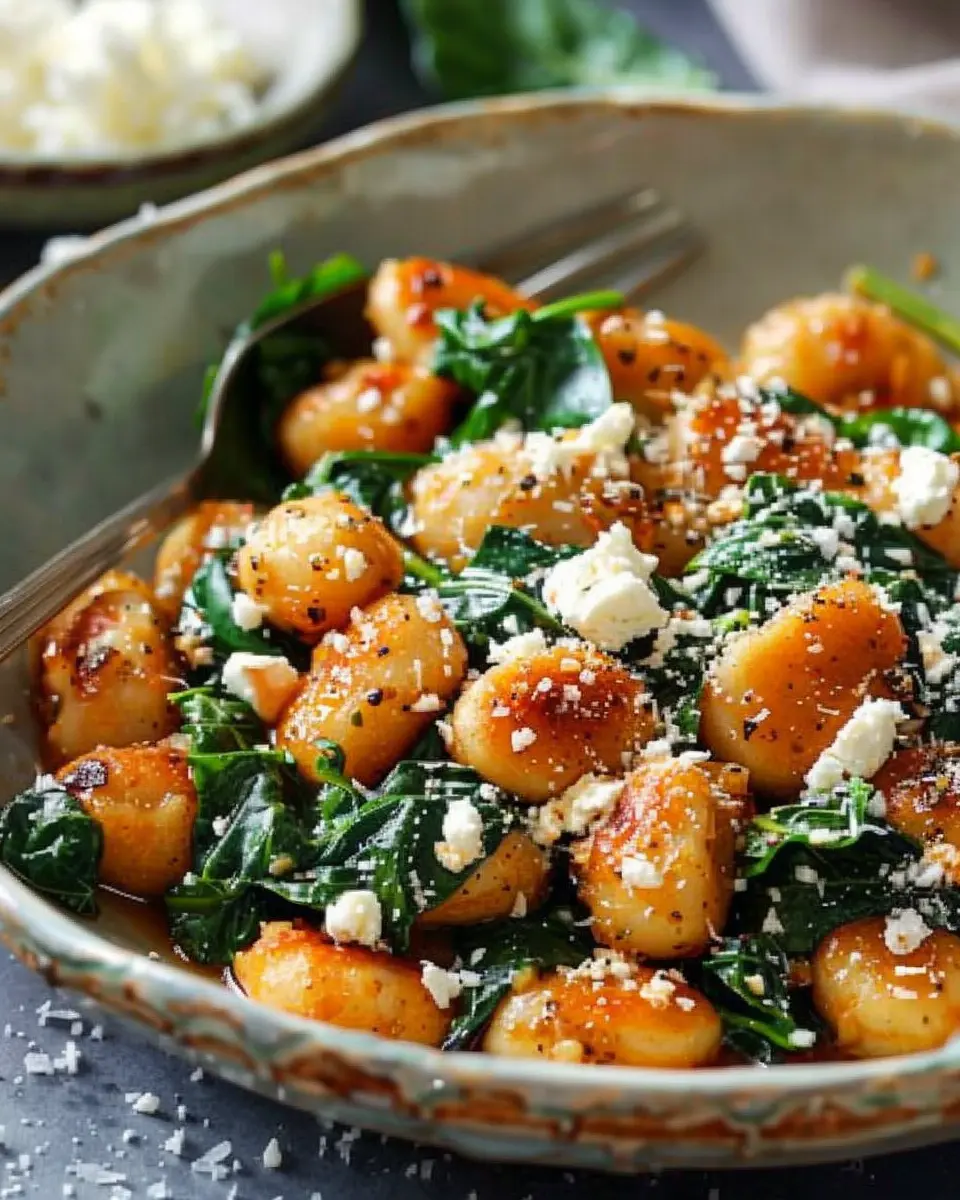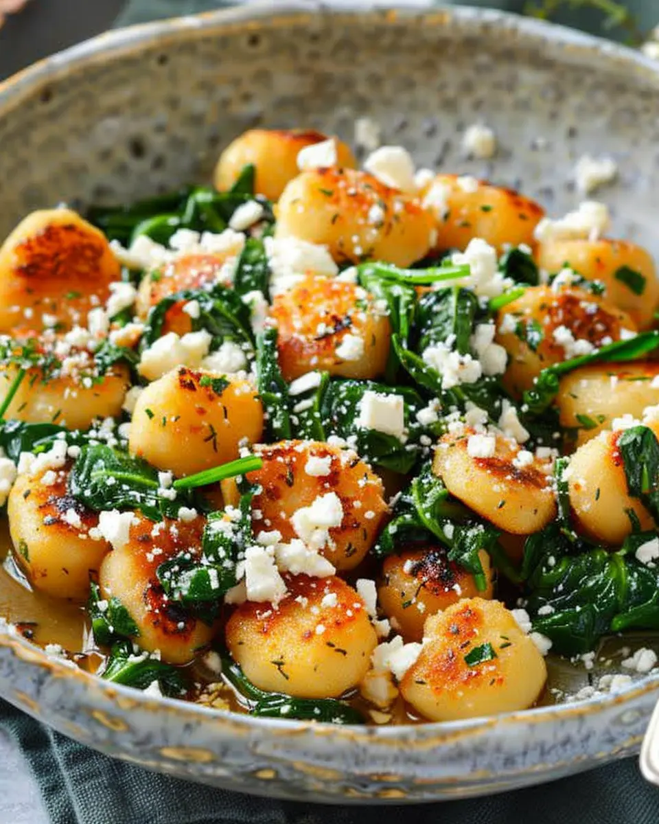 Introduction to Crispy Gnocchi with Spinach and Feta
