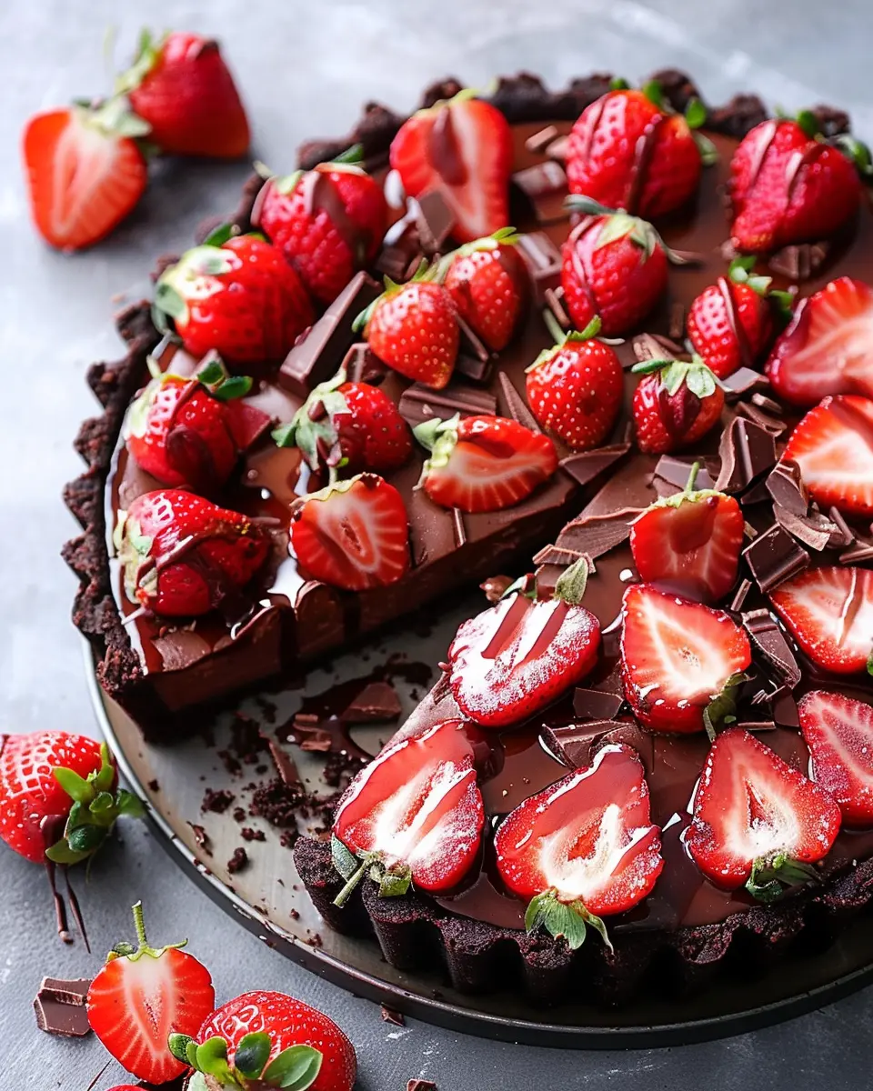In conclusion, the Dark Chocolate Strawberry Tart is a delightful combination of flavors that encapsulates the essence of indulgence without being overwhelming. This dessert is not only simple to prepare but also allows for creativity in presentation—perfect for impressing friends at your next gathering or enjoying a cozy evening at home. Pair it with coffee or a refreshing herbal tea to enhance the experience. Whether you opt for fresh strawberries or a mix of berries, this recipe is versatile enough to please various palates. So go ahead, give this tart a try, and let your taste buds dance with joy!