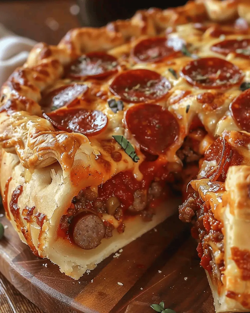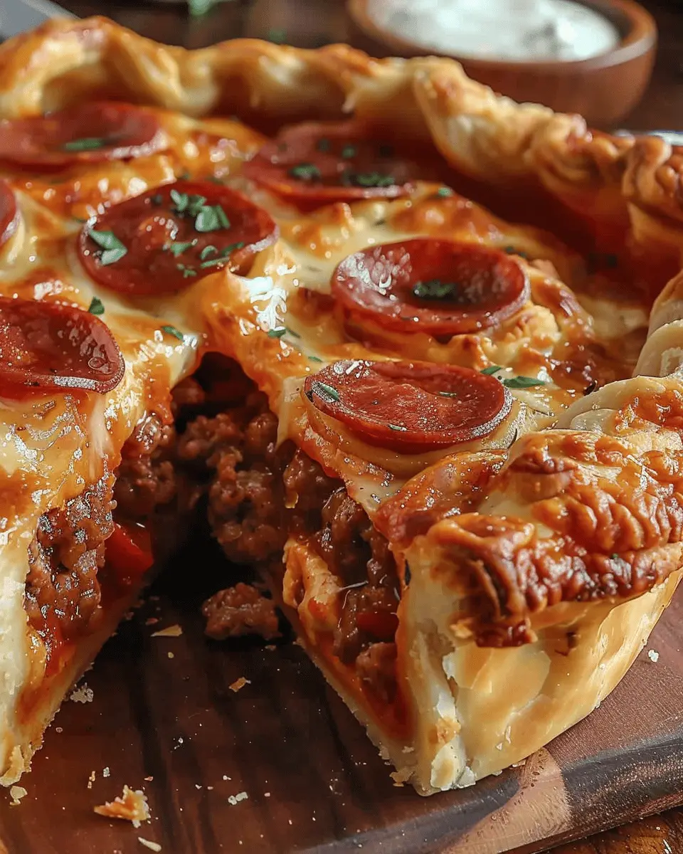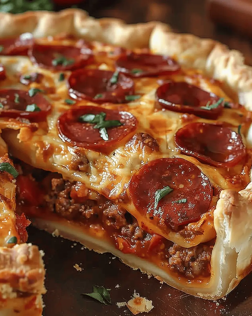 PrintDeep Hamburger Pie: An Indulgent Sausage & Pepperoni Delight