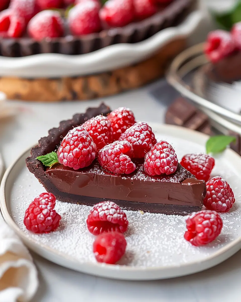 This easy chocolate raspberry tart is not only visually stunning but also a delight to the palate, combining rich chocolate and refreshing raspberries in every bite. Enjoy your creation and don’t forget to share the joy with friends or family — after all, desserts are best enjoyed in good company!
