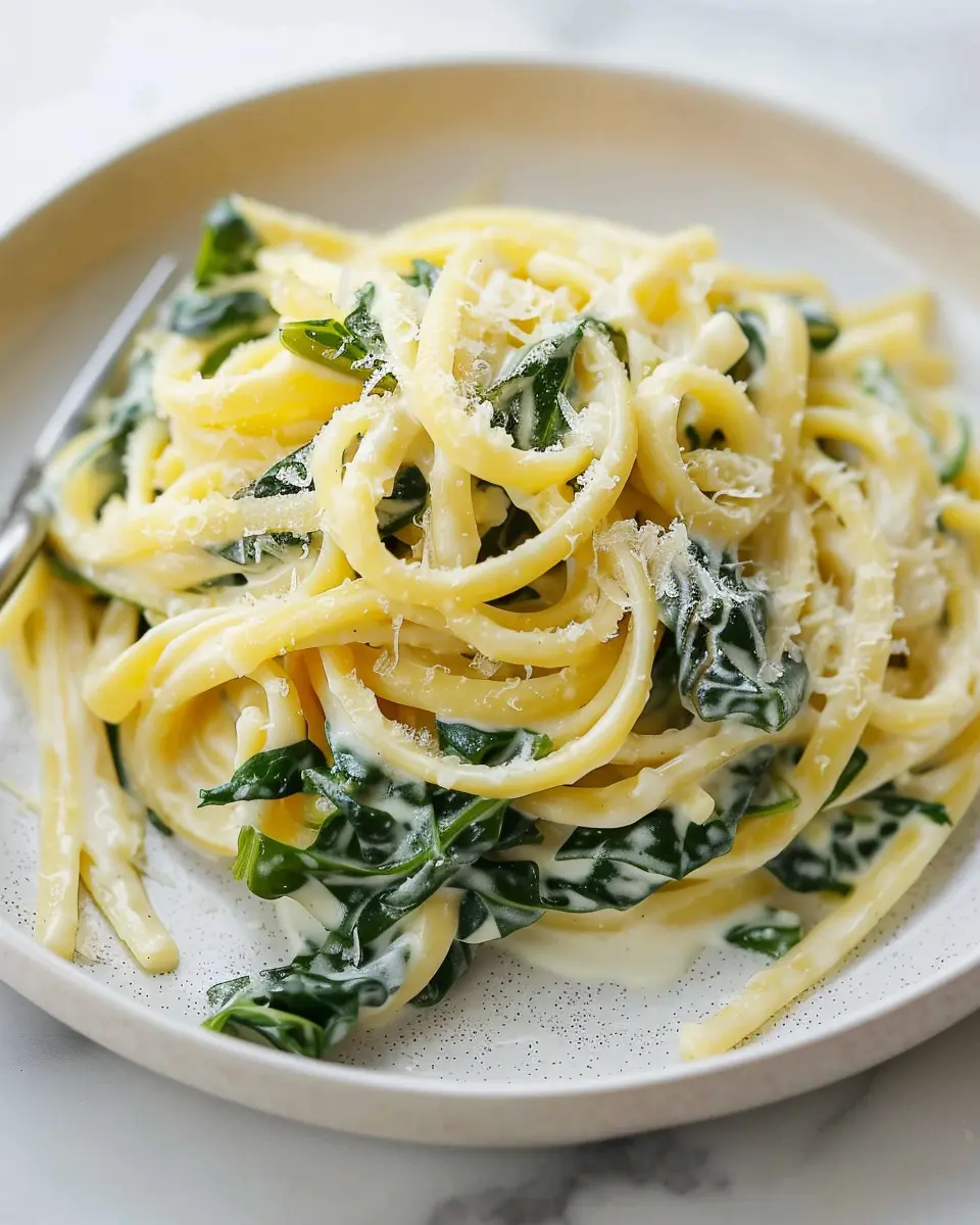 Once prepped, the cooking itself takes around 15 minutes. This part includes heating your pasta, sautéing the spinach, and mixing everything together into a creamy delight that you won’t be able to resist!
