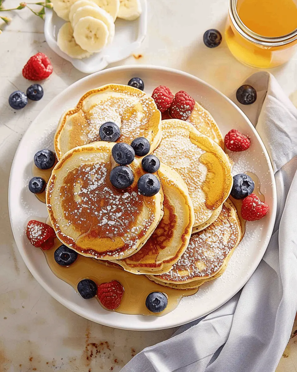 These easy pancakes provide a nice balance of carbs and protein, making them a satisfying start to your day without being too heavy.