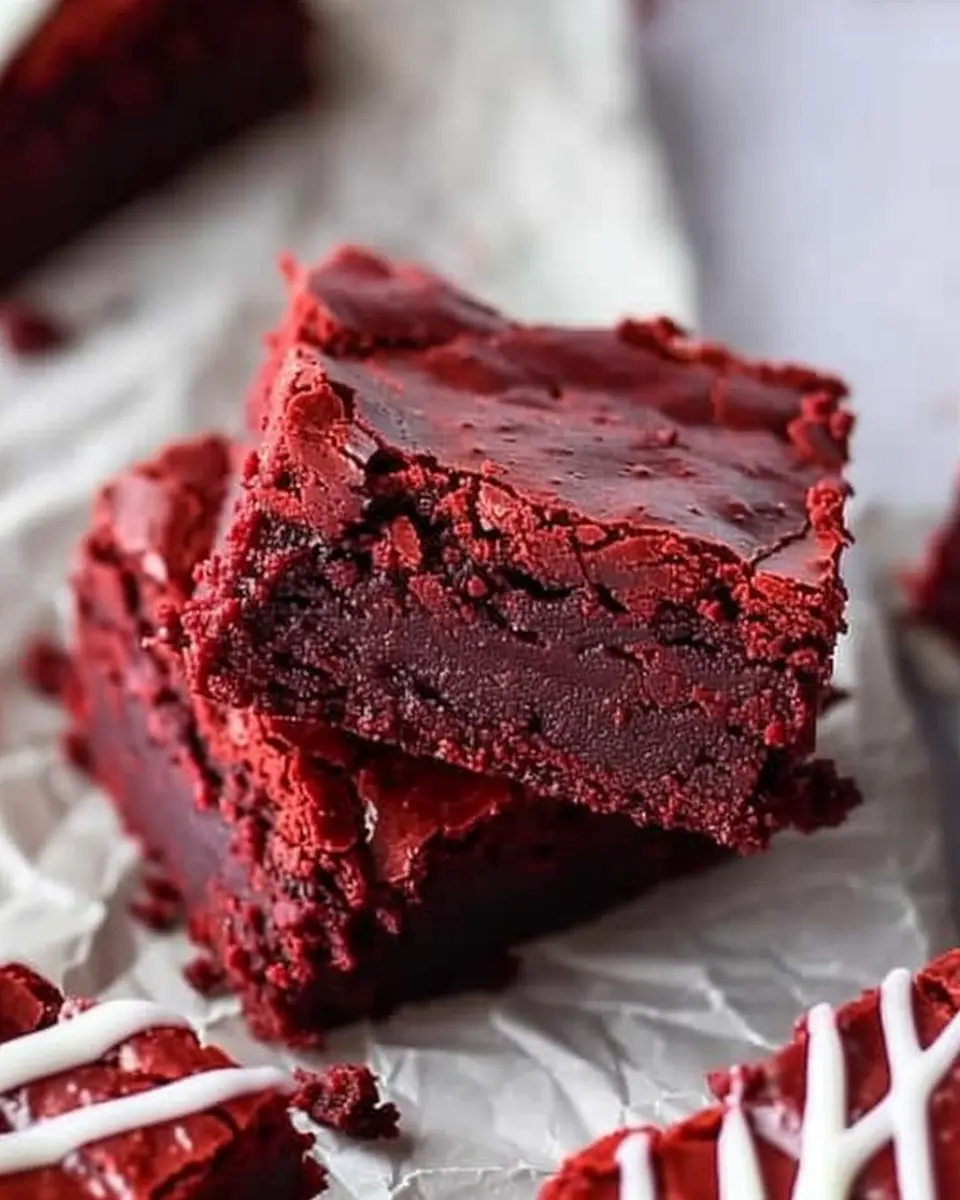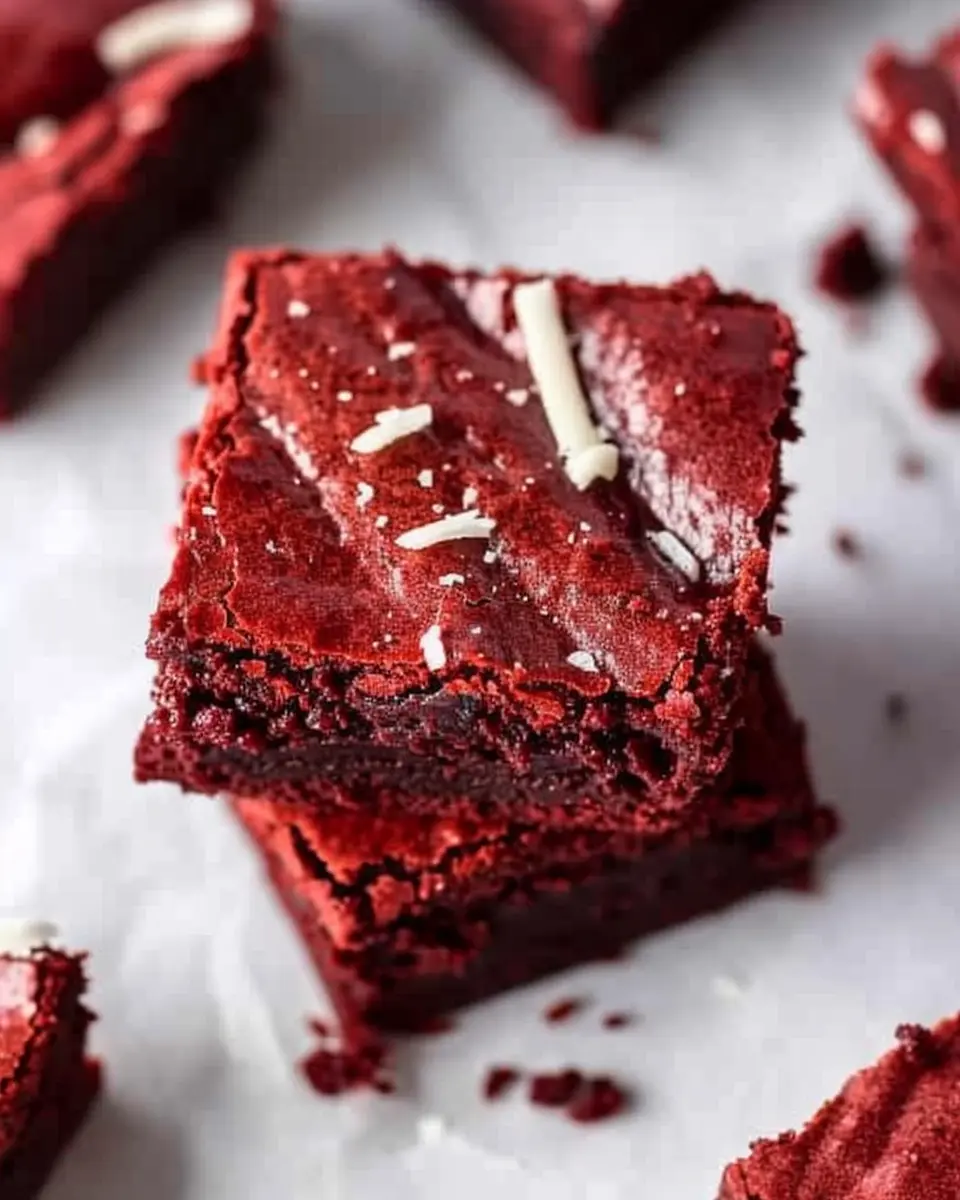Indulge in these rich and fudgy red velvet brownies, perfect for any chocolate lover.