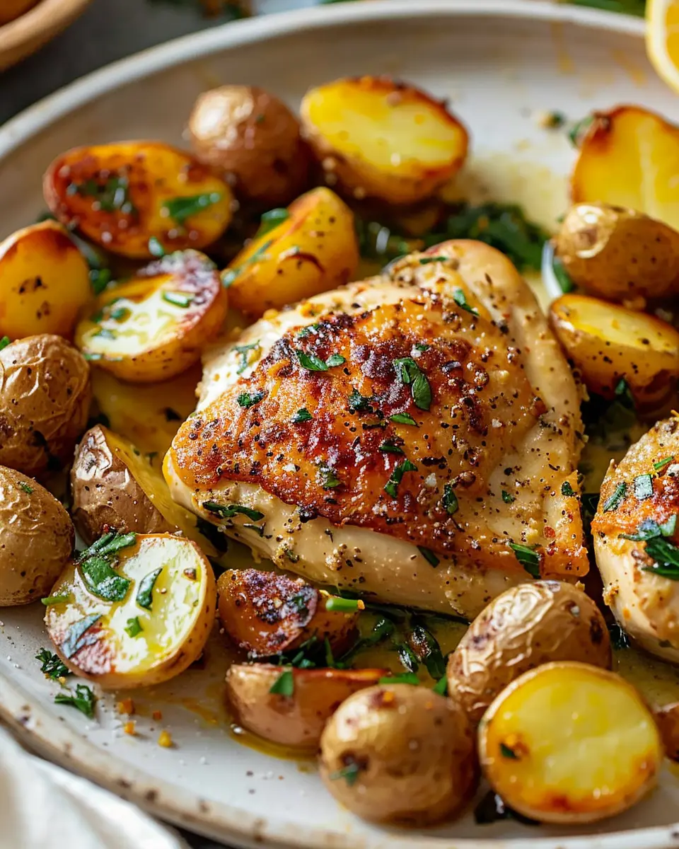 Keywords: Garlic Parmesan Chicken, Crispy Roasted Potatoes, One-Pan Wonder, Chicken Recipes