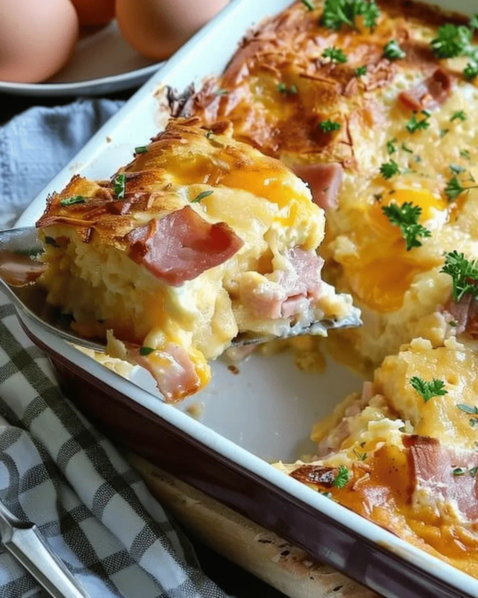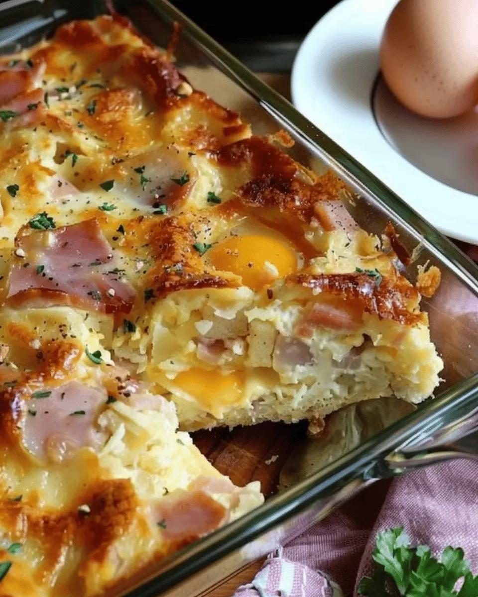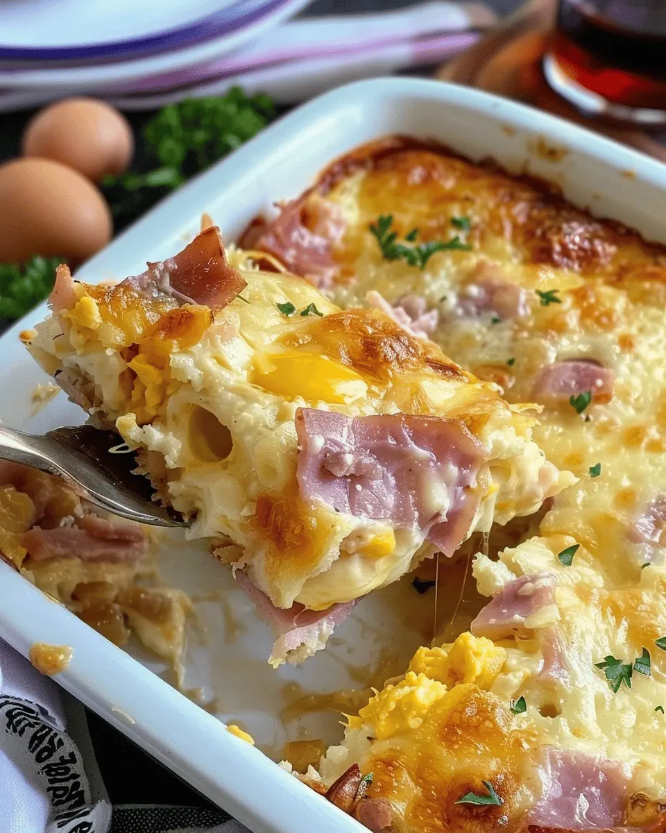 Discover the delightful combination of ham, eggs, and cheese in this easy casserole recipe.