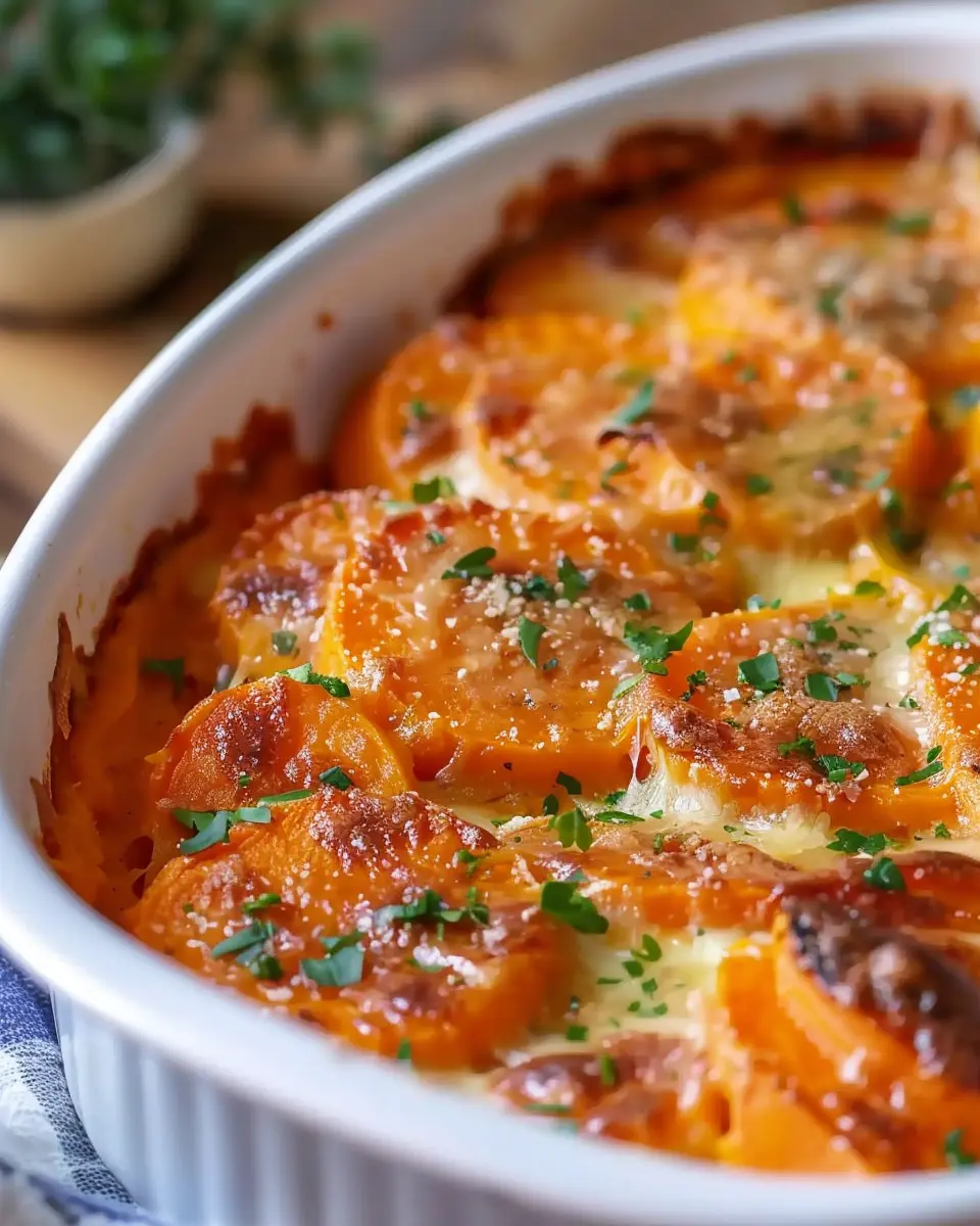 This Homemade Garlic Butter Sweet Potato Bake is the ultimate comfort dish, combining sweet potatoes with a rich garlic butter sauce for a delicious and satisfying meal.