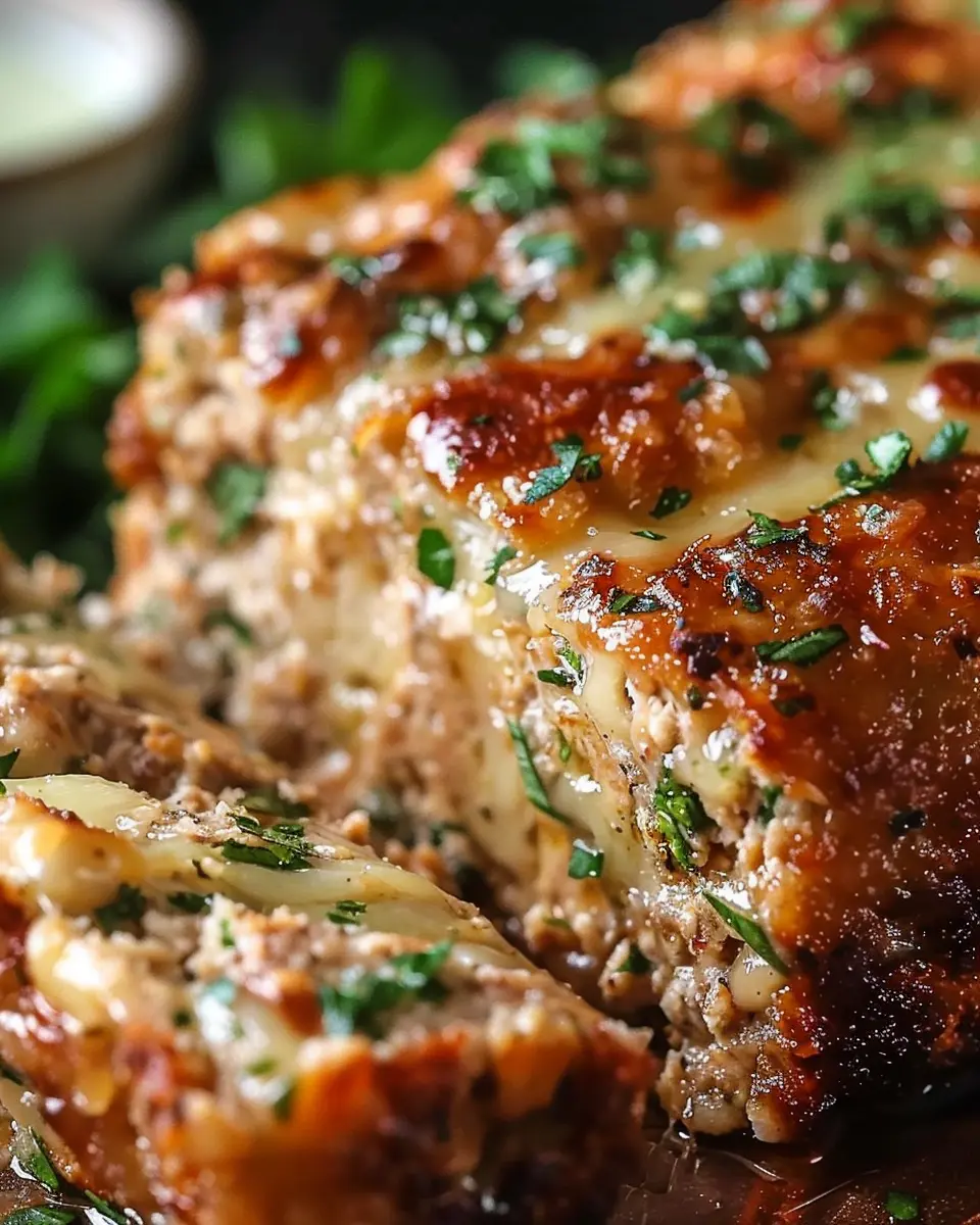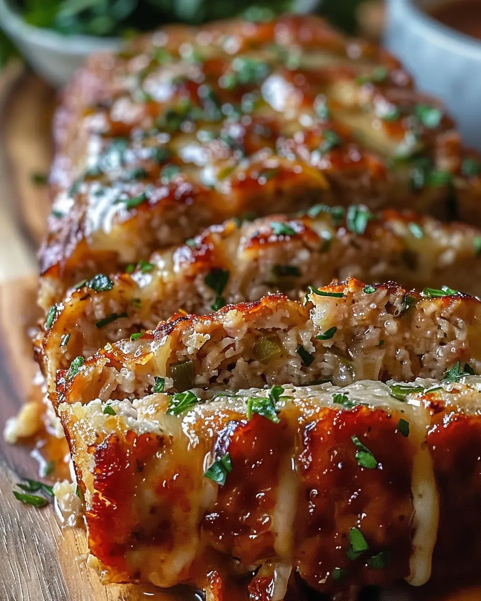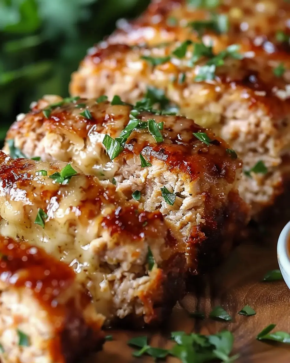Delightful and flavorful, this Juicy Garlic Parmesan Chicken Meatloaf with a turkey bacon twist combines comfort with a gourmet touch.