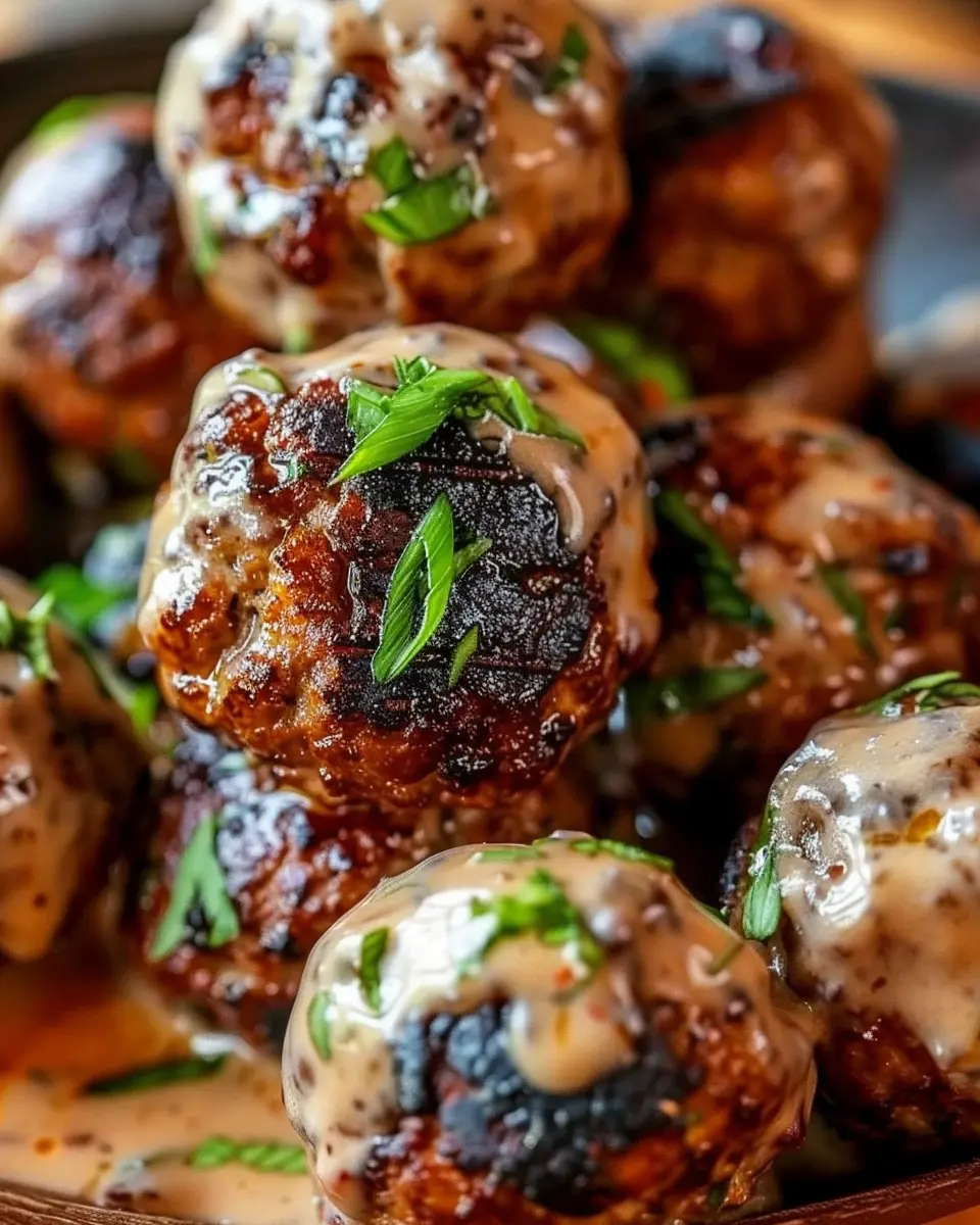 PrintKorean BBQ Meatballs: Juicy Bites with Spicy Mayo Dip in 7 Steps