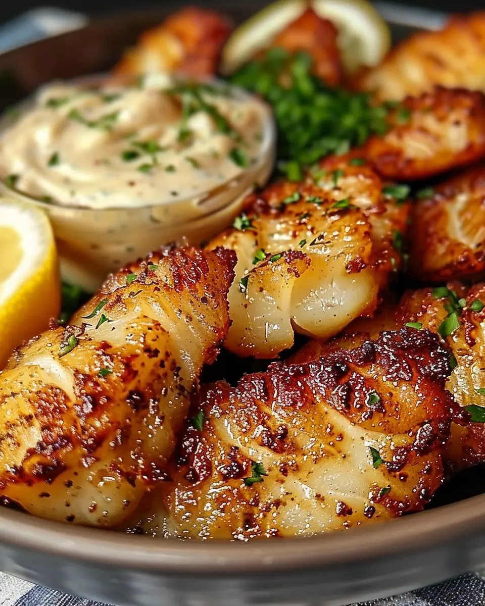 PrintLemon Butter Fish Bites: Easy Recipe with Garlic Aioli Delight