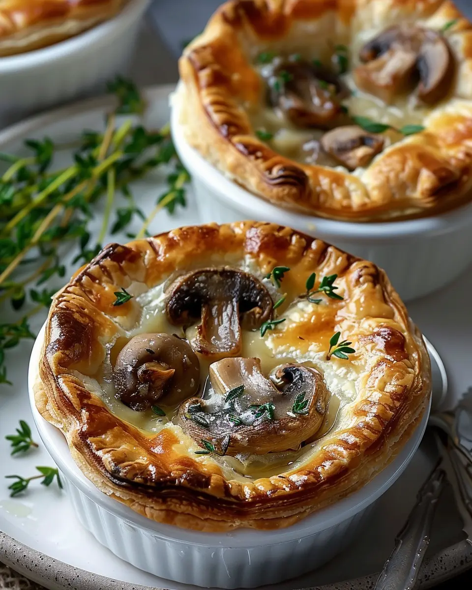 A delicious recipe for mini mushroom and Gruyère pot pies, perfect for a cozy meal.