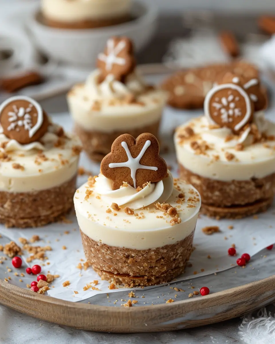 Keywords: No-Bake Gingerbread Cheesecake Cups, Festive Dessert, Holiday Dessert