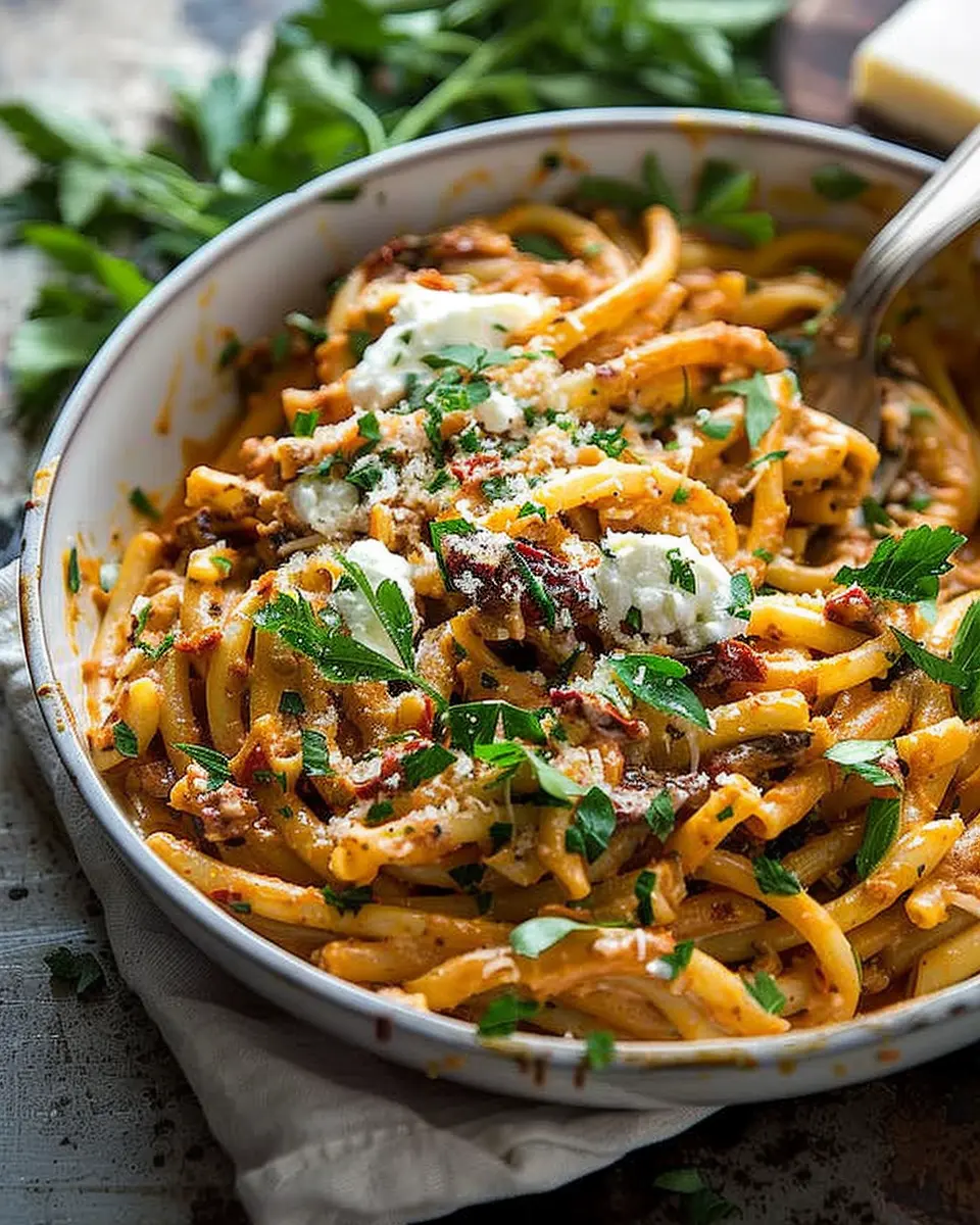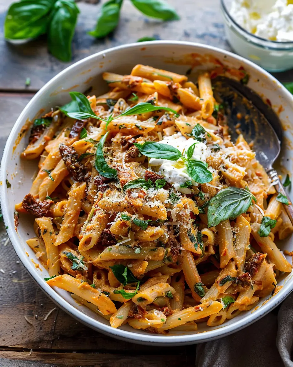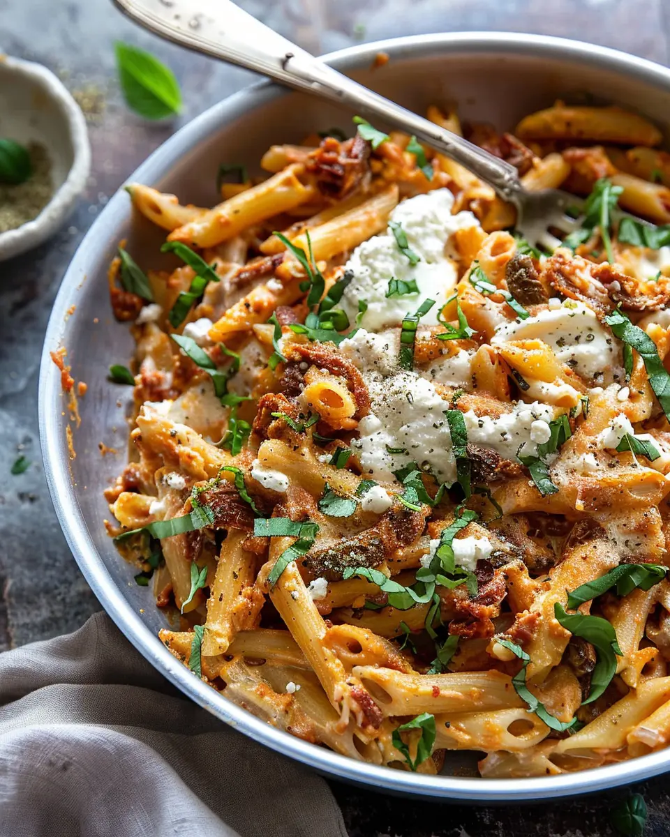 Wrapping up our delightful journey with this one pot sun-dried tomato pasta, it’s clear that simplicity and flavor can go hand in hand. The beauty of this dish lies in its ease; with minimal cleanup and maximum taste, it’s perfect for busy weeknights or a cozy gathering with friends. Plus, the creamy whipped ricotta elevates each bite, providing a rich texture that complements the tangy sun-dried tomatoes beautifully.