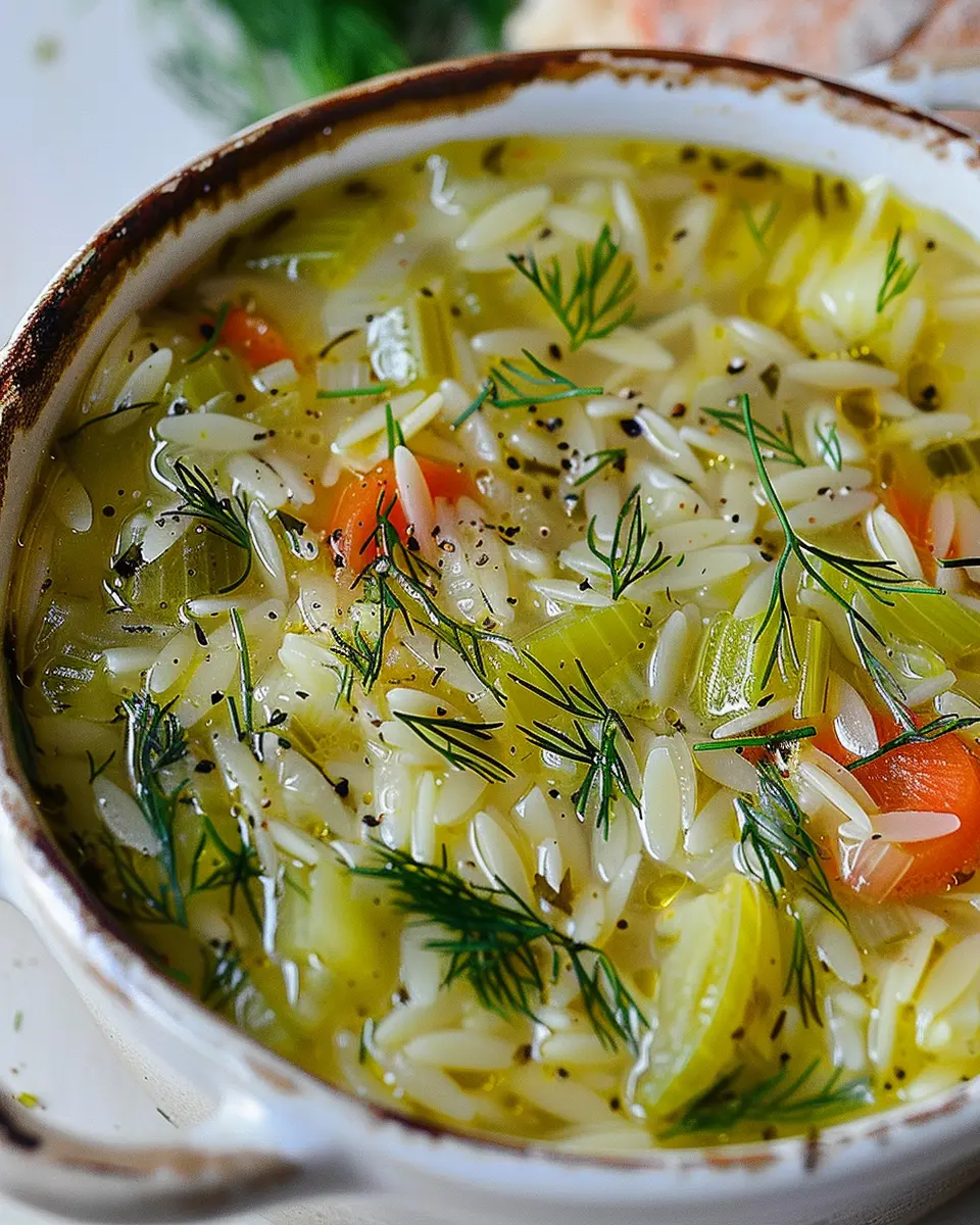 A comforting soup featuring orzo, leeks, and fresh dill that’s both delicious and easy to make.