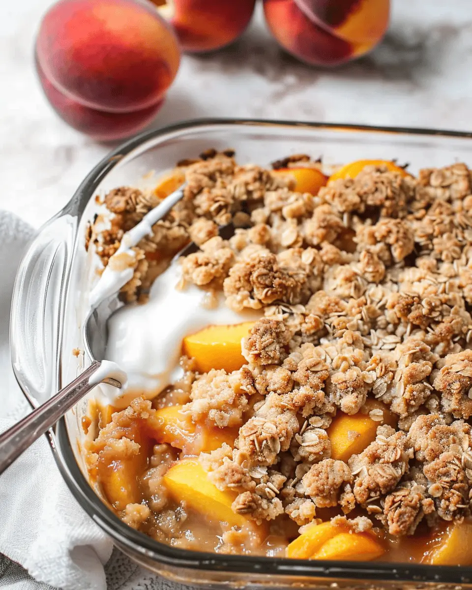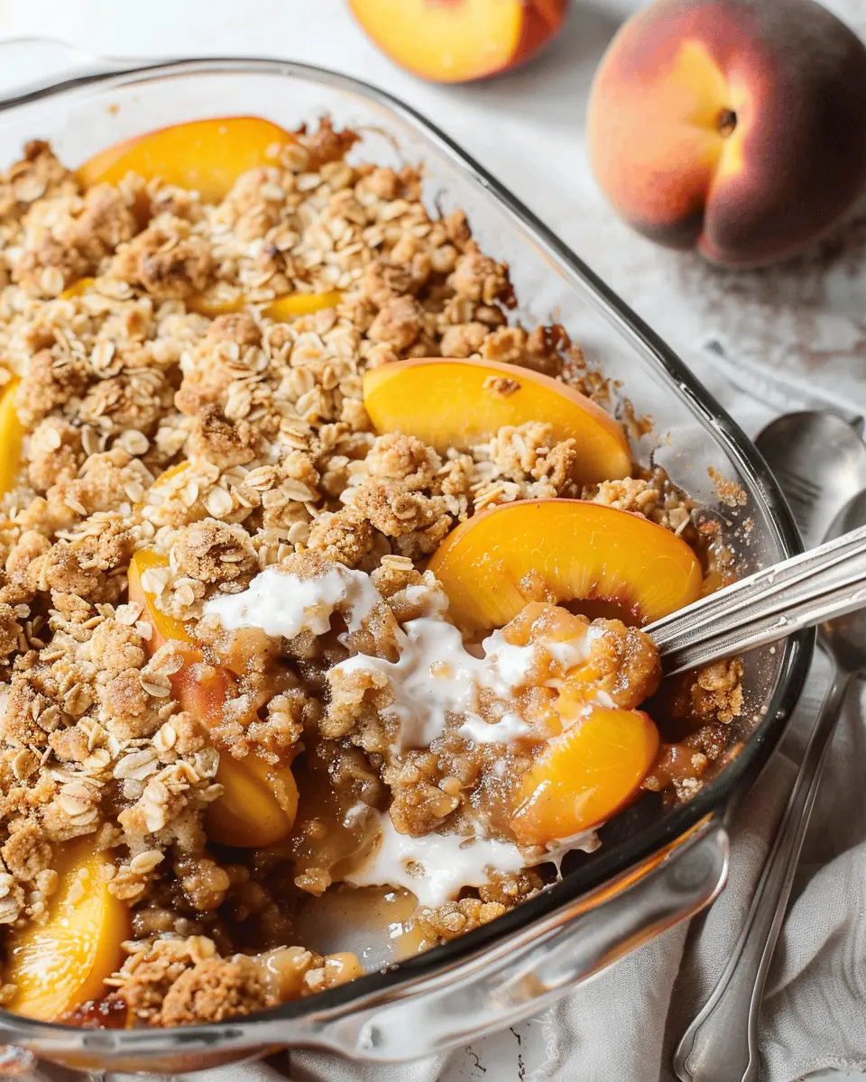 Using canned peaches in this recipe not only simplifies the process but also makes it accessible year-round, regardless of the season. Canned fruits retain their flavors and can be a quick solution when fresh peaches aren’t available. With just a few simple ingredients, you can whip up a warm, bubbly peach crisp that pairs perfectly with a scoop of vanilla ice cream or a dollop of whipped cream.