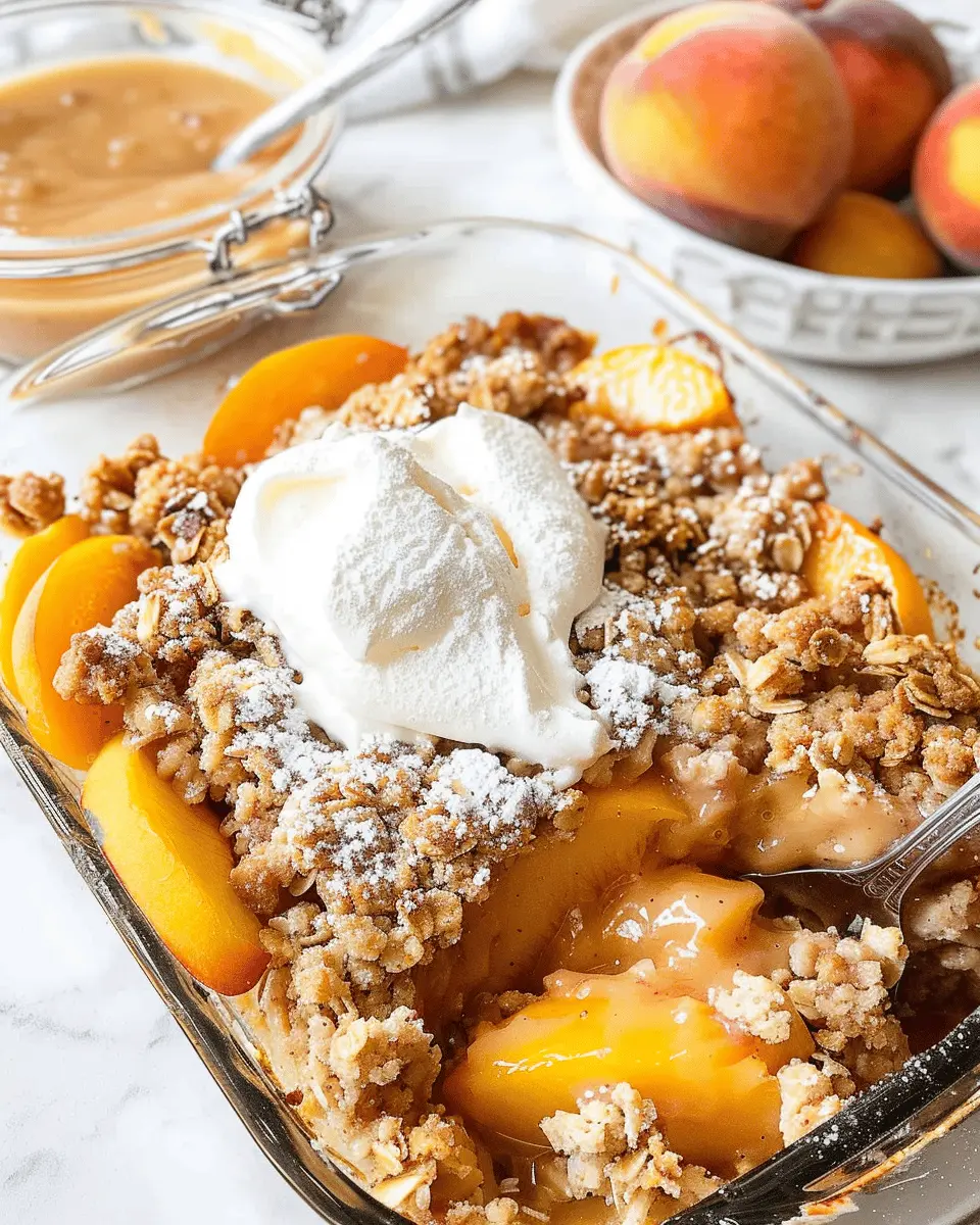 These toppings not only enhance the flavors but also add a playful texture to your dessert. Pairing your peach crisp with a refreshing drink, like iced tea or a fizzy lemonade, can also provide a delightful palate cleanser.