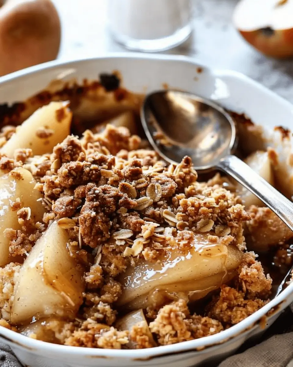 Mix these ingredients well, and you’ll have a golden, crispy topping that contrasts beautifully with the soft, juicy pears below. Ready to dust off that baking dish? Your pear crisp will be the star of the table!