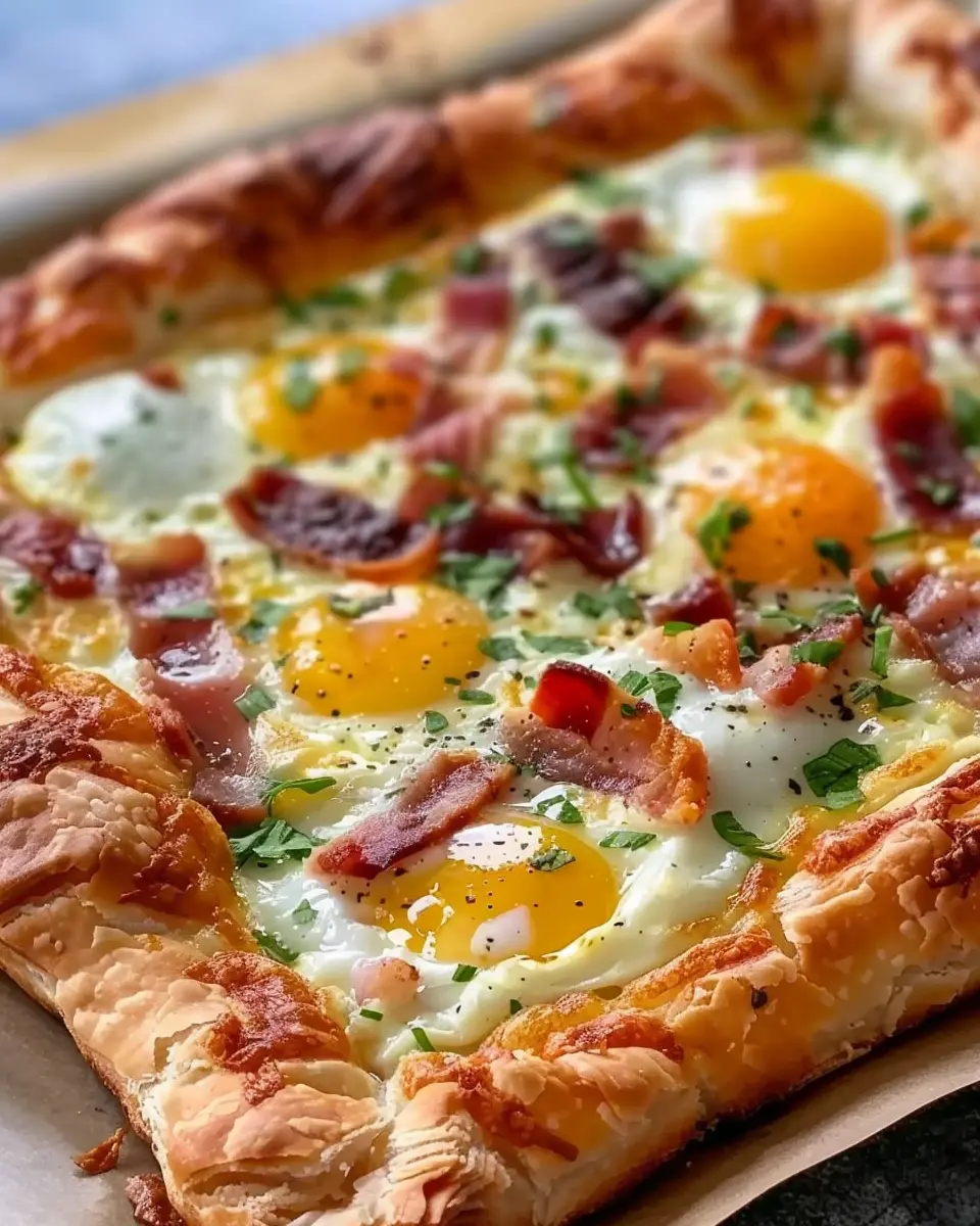 If you’re searching for a way to elevate your brunch game, look no further than the Puff Pastry Breakfast Pizza recipe. This delightful dish combines the flaky, buttery goodness of puff pastry with all your favorite breakfast toppings, creating a meal that’s not only delicious but also visually stunning. Imagine waking up to a warm, golden pastry topped with perfectly cooked eggs, turkey bacon, and a sprinkle of cheese—it’s a breakfast that feels indulgent yet surprisingly simple to make.