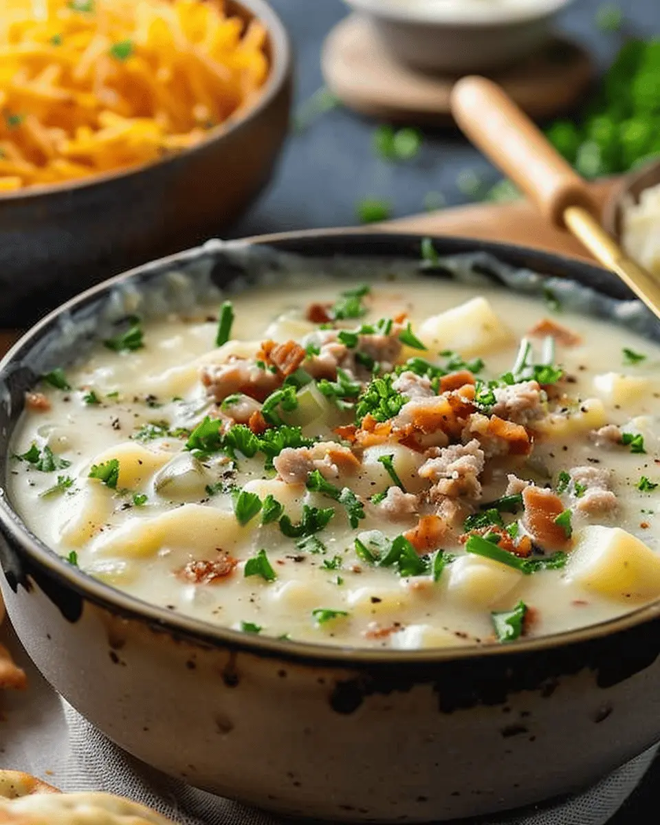 Toppings are a fun way to personalize your soup, turning your Quick and Easy Outback Potato Soup Recipe into a delightful meal. Alongside the classic Turkey Bacon, why not try Chicken Ham, cheese (like sharp cheddar or gouda), or even a dollop of sour cream for that extra creamy texture?