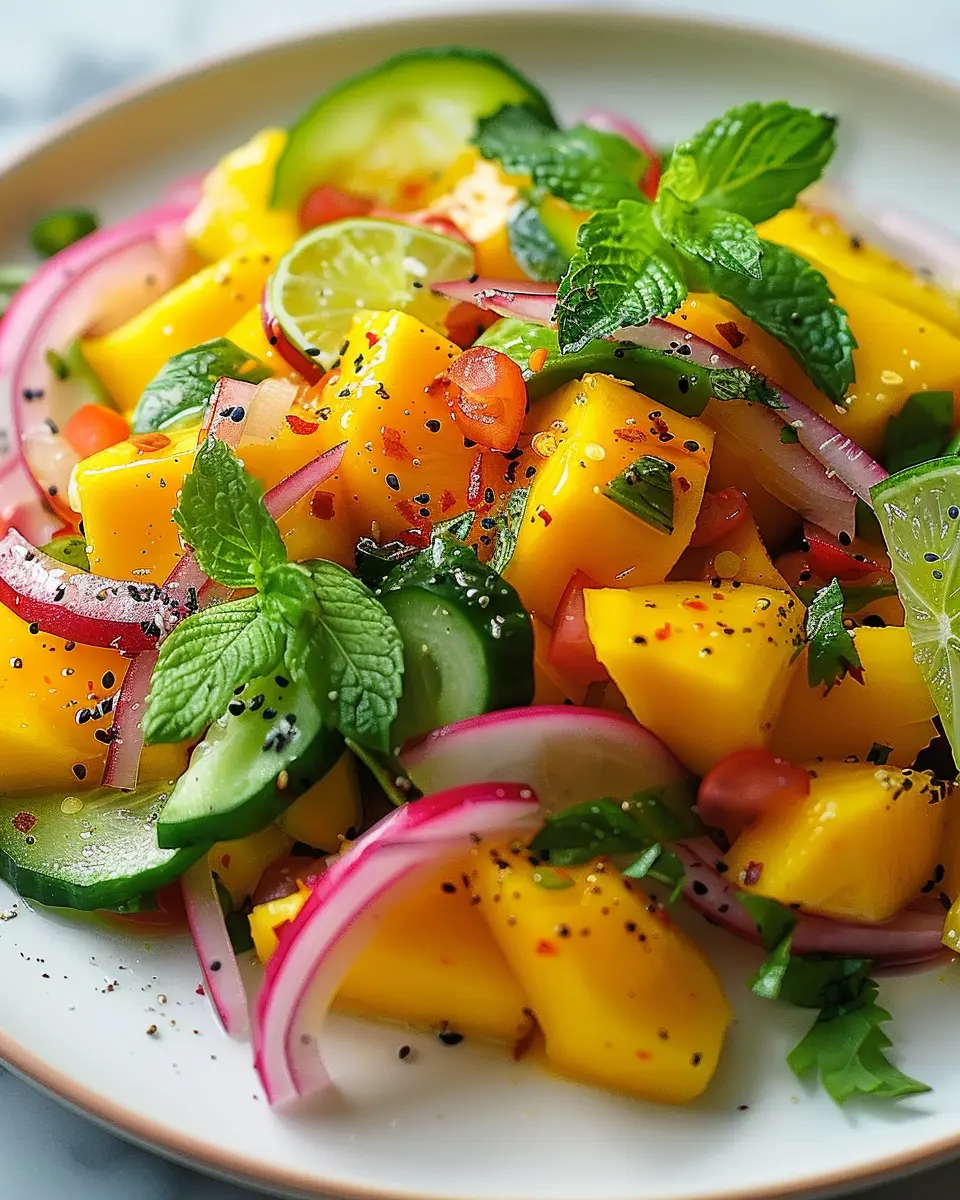 In today’s fast-paced world, having recipes like this salad in your culinary arsenal is essential. It’s nutritious, quick, and most importantly, it makes healthy eating feel effortless. Whether you need a light lunch or a vibrant side dish for dinner, this refreshing mango salad fits the bill perfectly. So, let’s dive into the recipe and start enjoying delicious, wholesome meals!