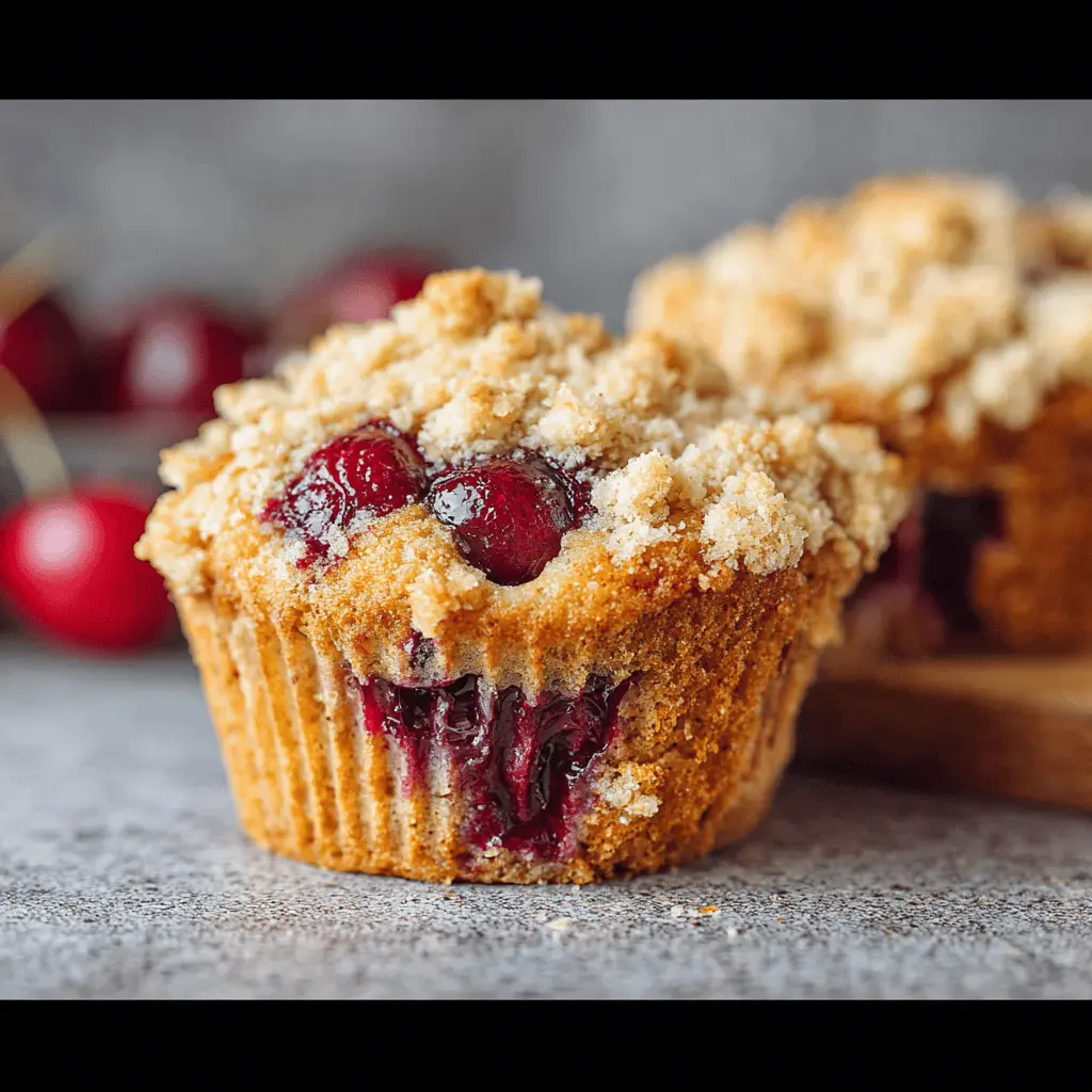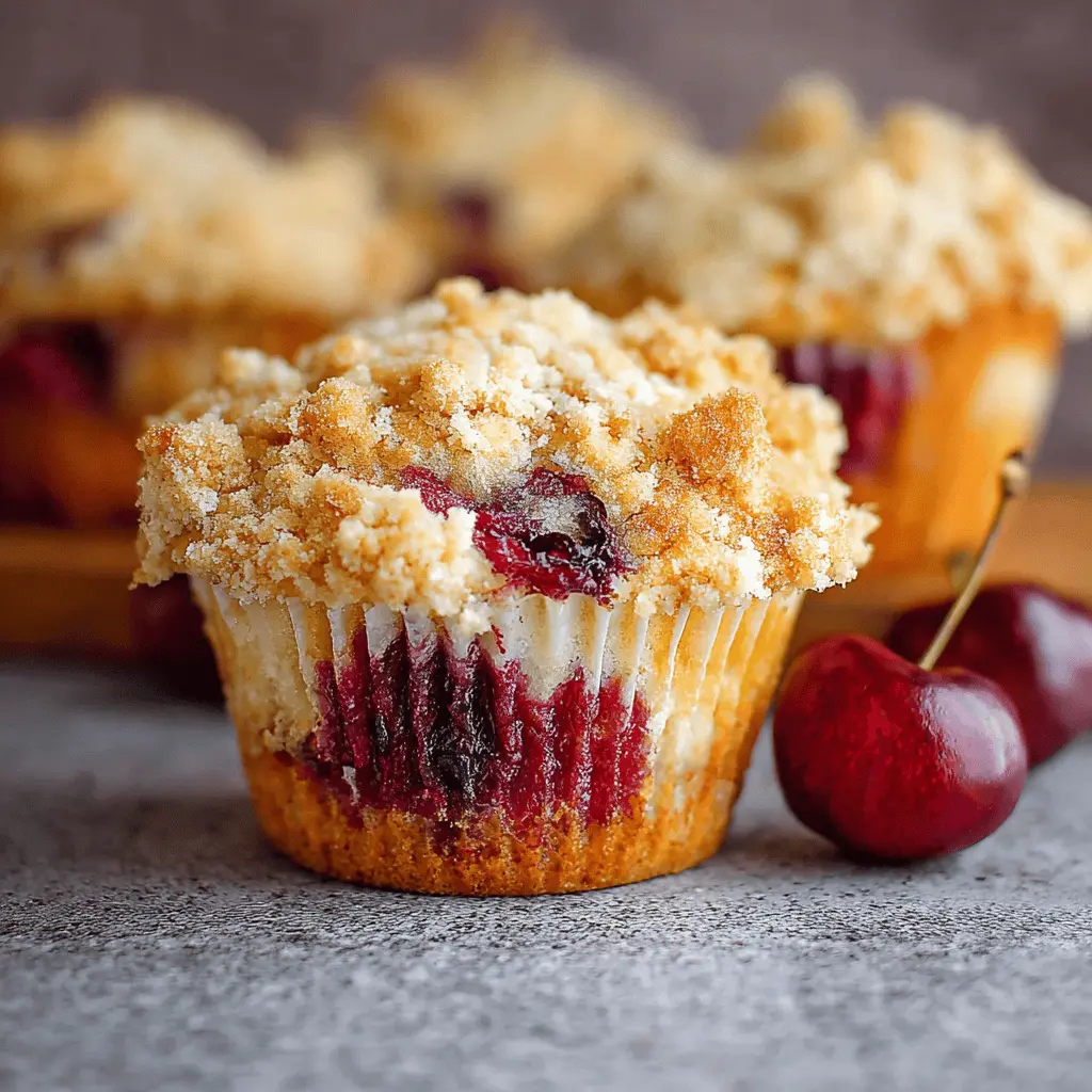 Delight in the sweetness of soft cherry muffins topped with a crispy streusel. Perfect for breakfast or a sweet treat!