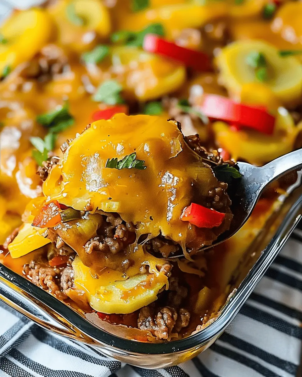 A comforting and hearty dish that layers flavor and texture, perfect for family dinners.