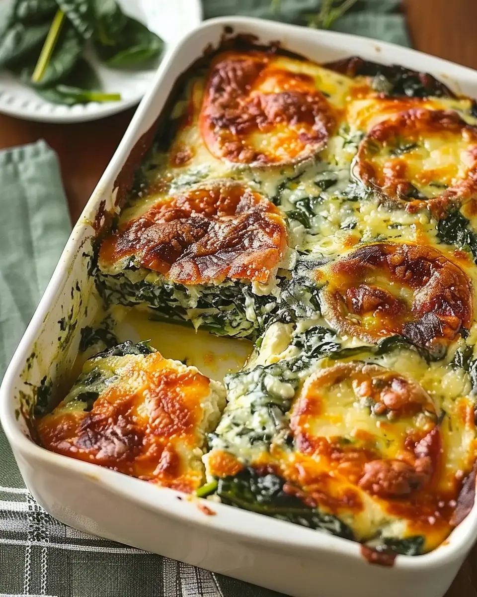 The combination of onion, garlic, and spinach not only infuses flavor but also welcomes a vibrant color to your casserole.