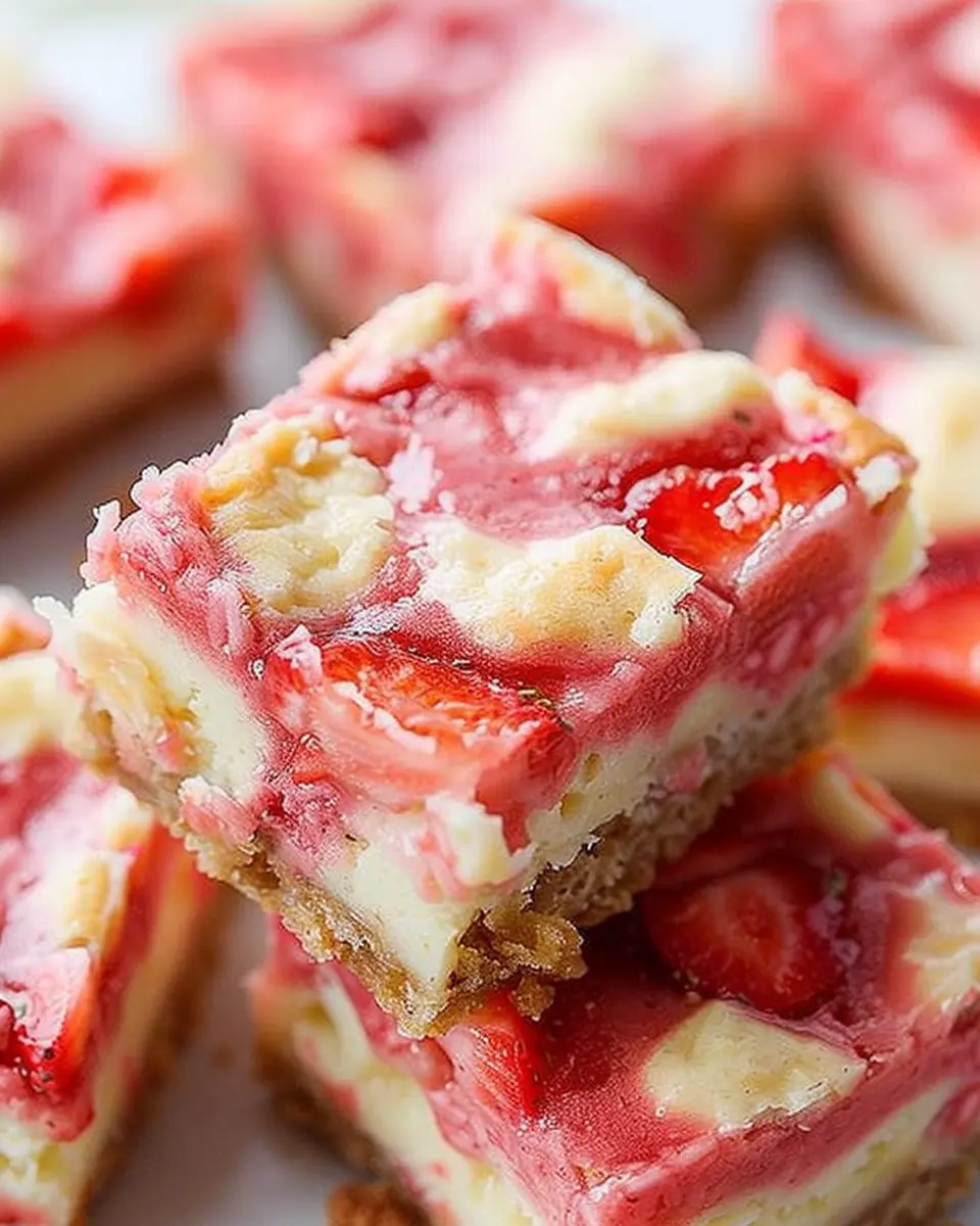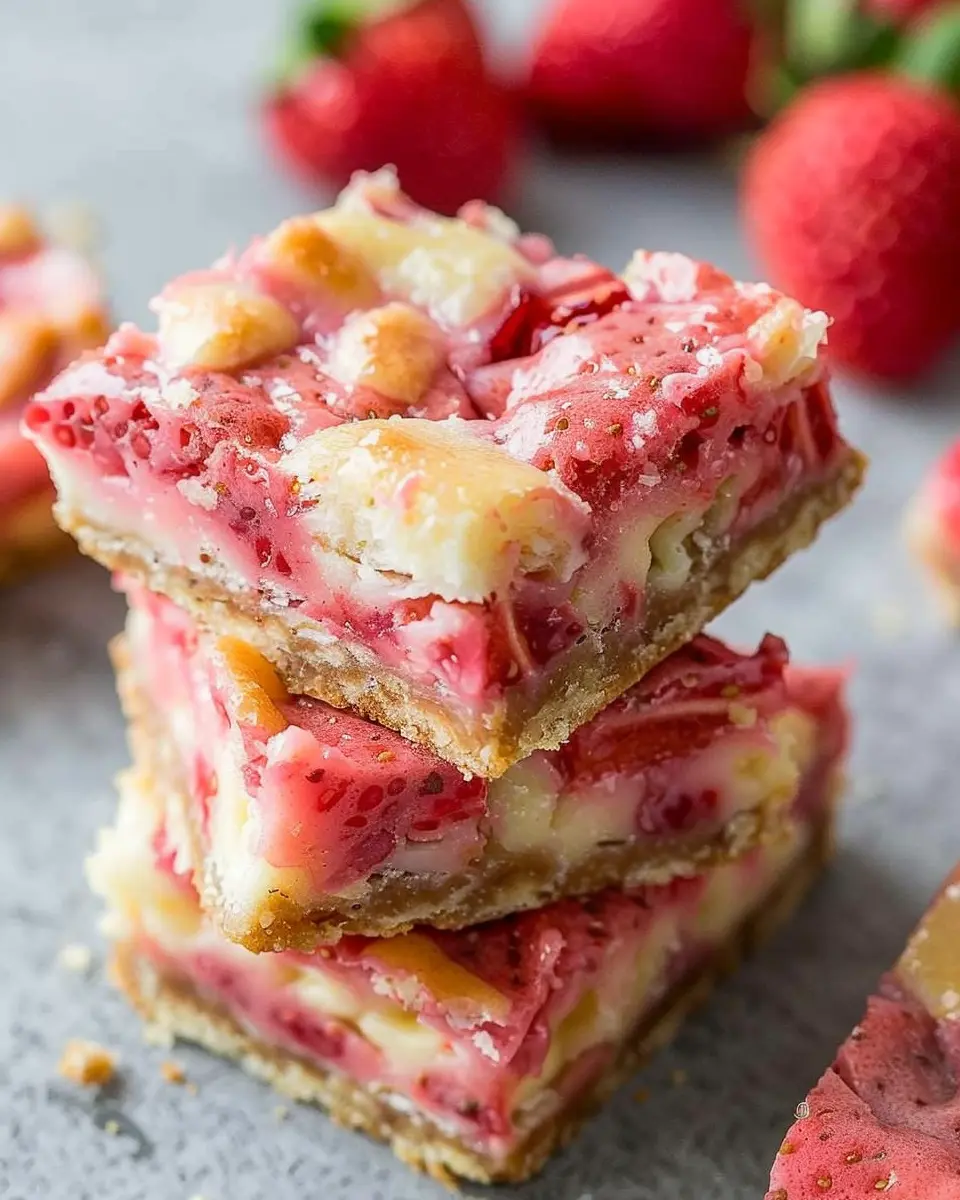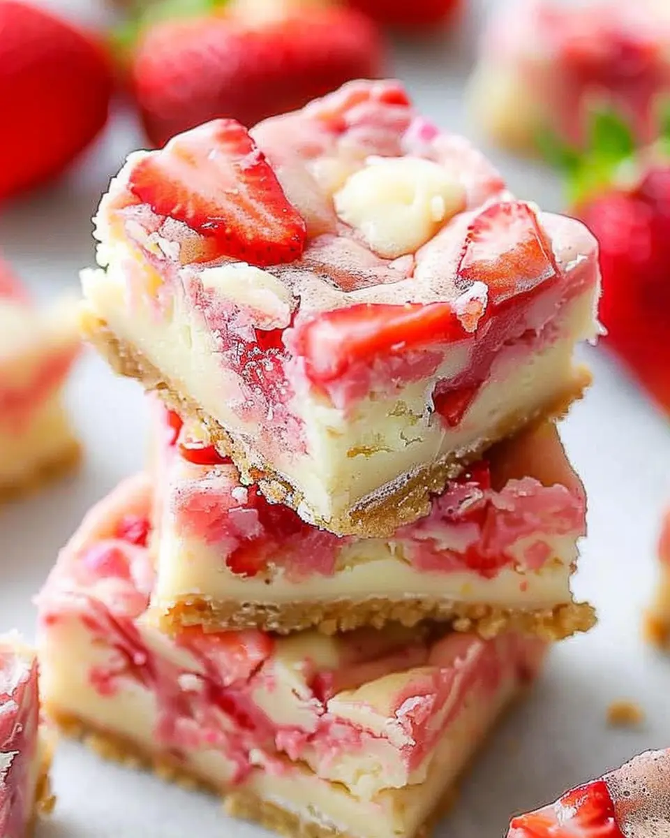 Versatile Flavors: Whether you’re a fan of strawberries or looking to experiment, these bars are adaptable. You could swap strawberries for other berries like raspberries or blueberries, and still enjoy that delightful combination of fruit and creaminess.
