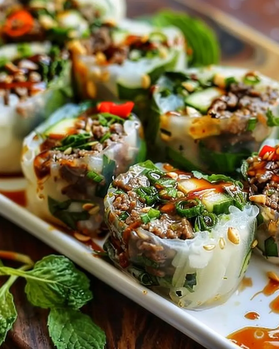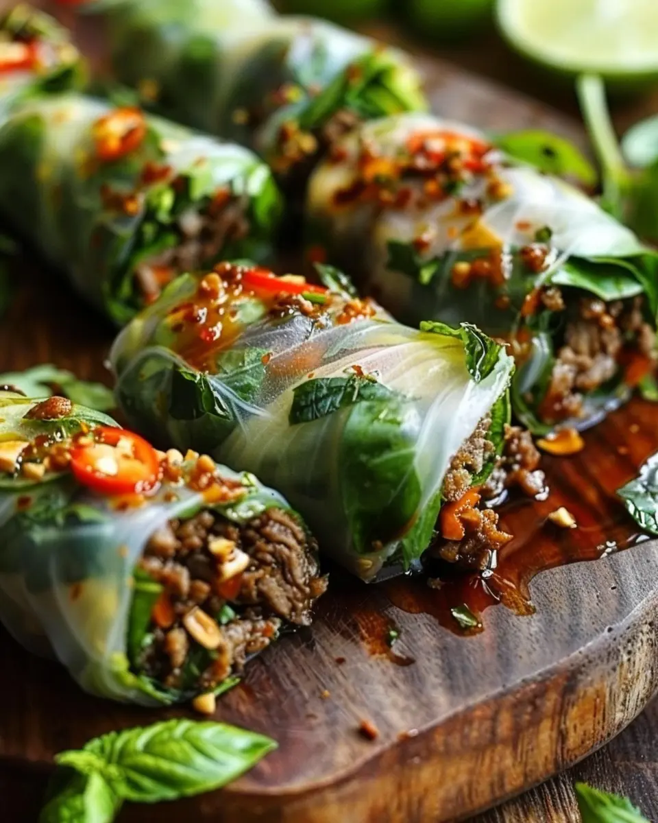 PrintThai Basil Beef Rolls: The Best Easy Recipe for Flavorful Bites